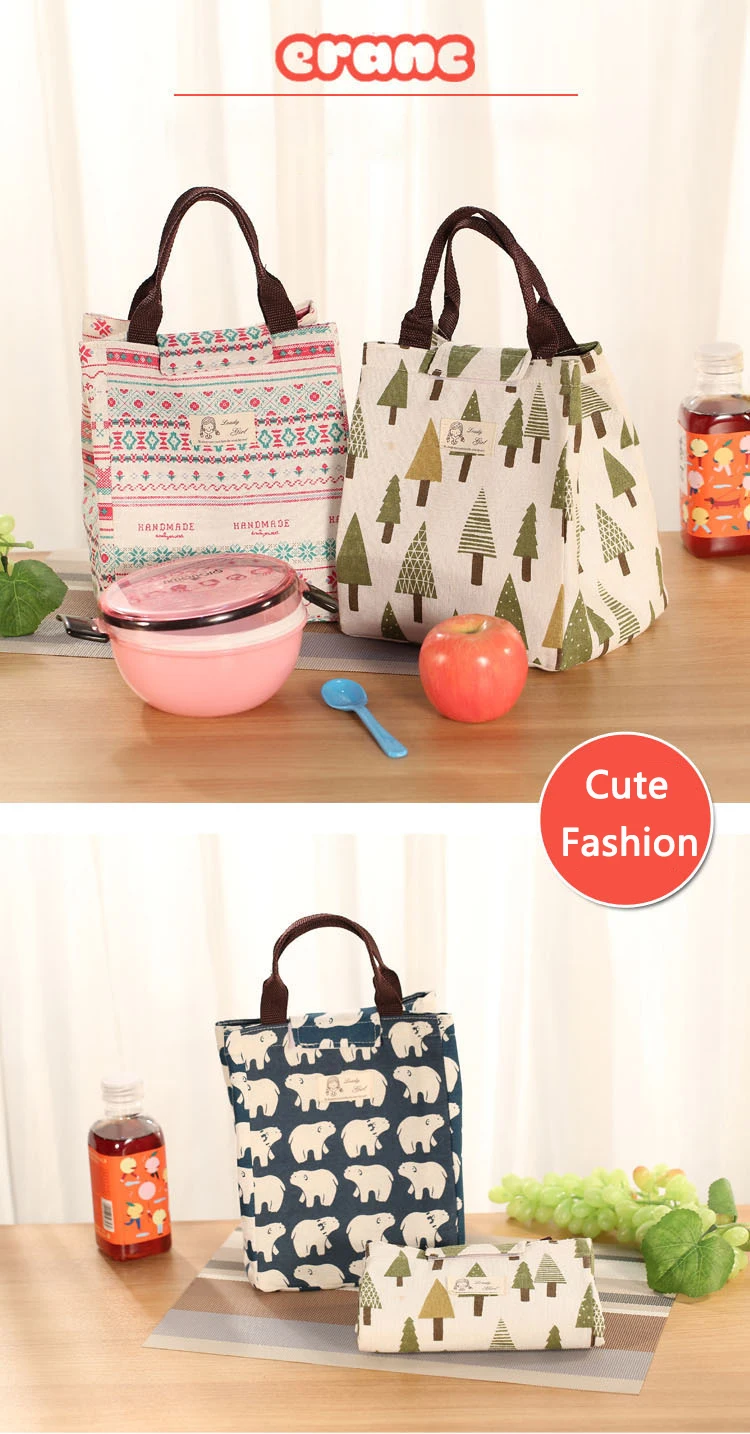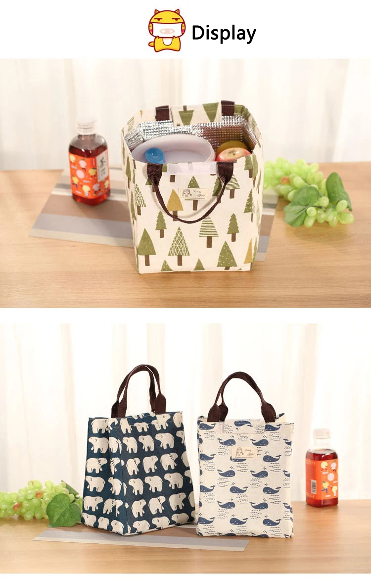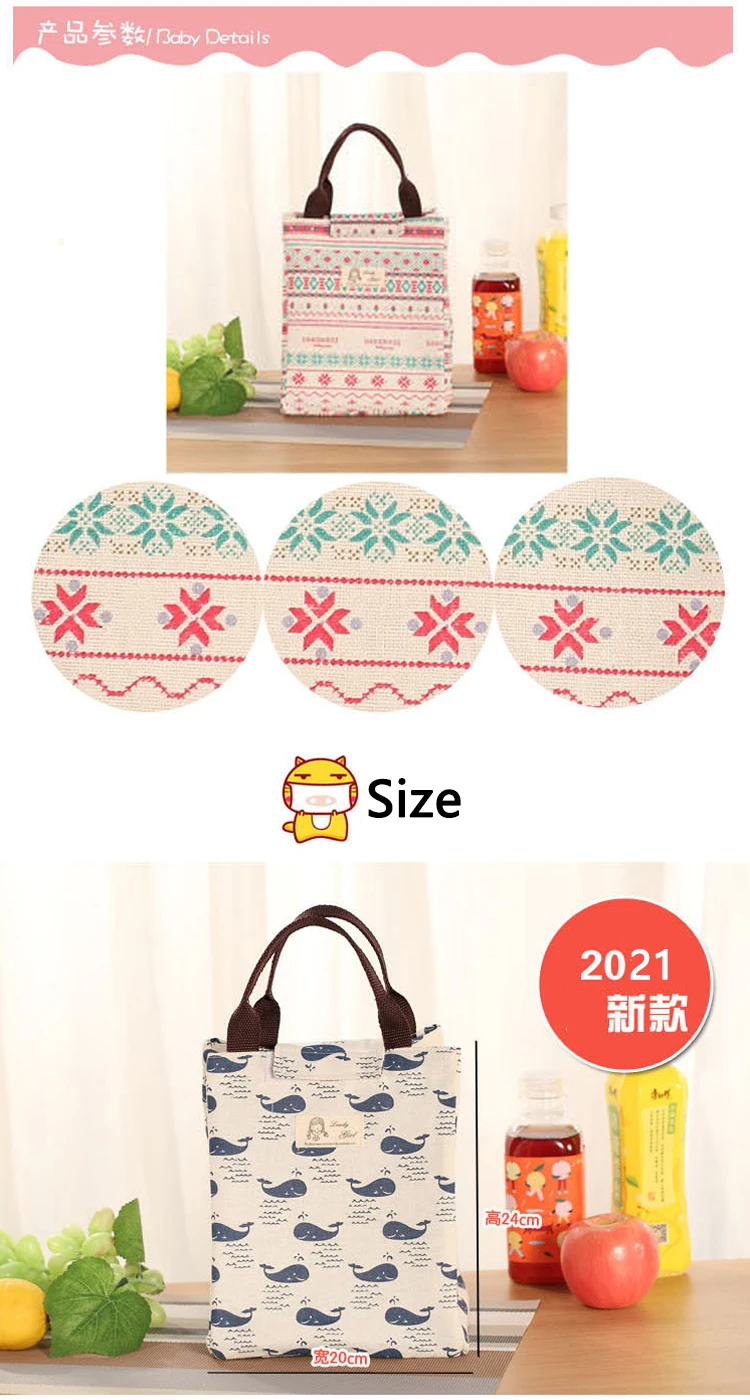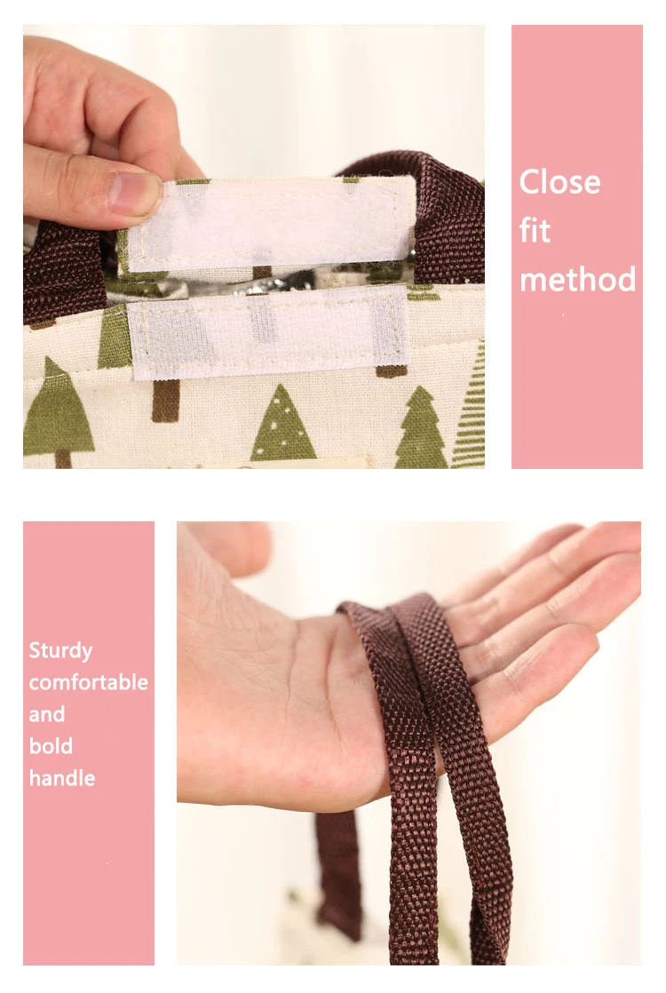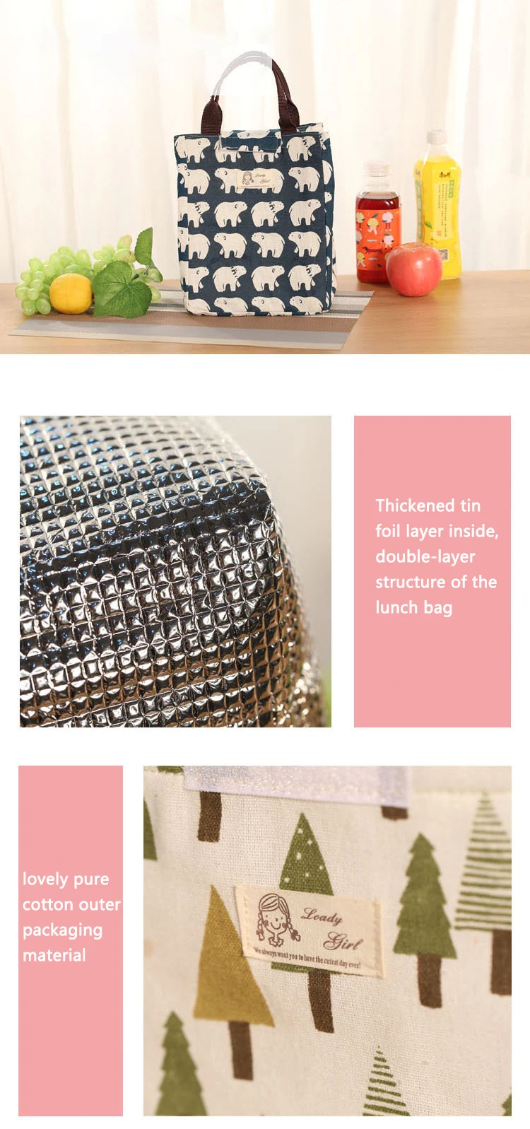 Толстый слой оловянной фольги внутри, Двухслойная структура сумки для обеда, красивый внешний упаковочный материал из чистого хлопка.