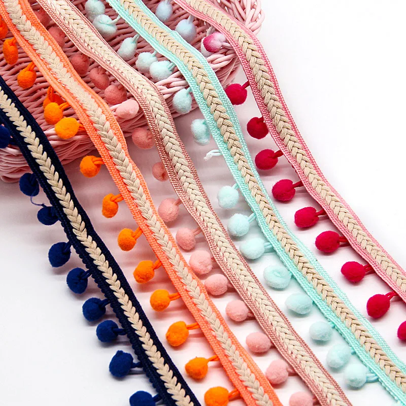 Плетеная кружевная отделка, лента, разноцветный помпон, кружевная бахрома, для рукоделия, скатерть, ткань для шитья, винтажные аксессуары для одежды
