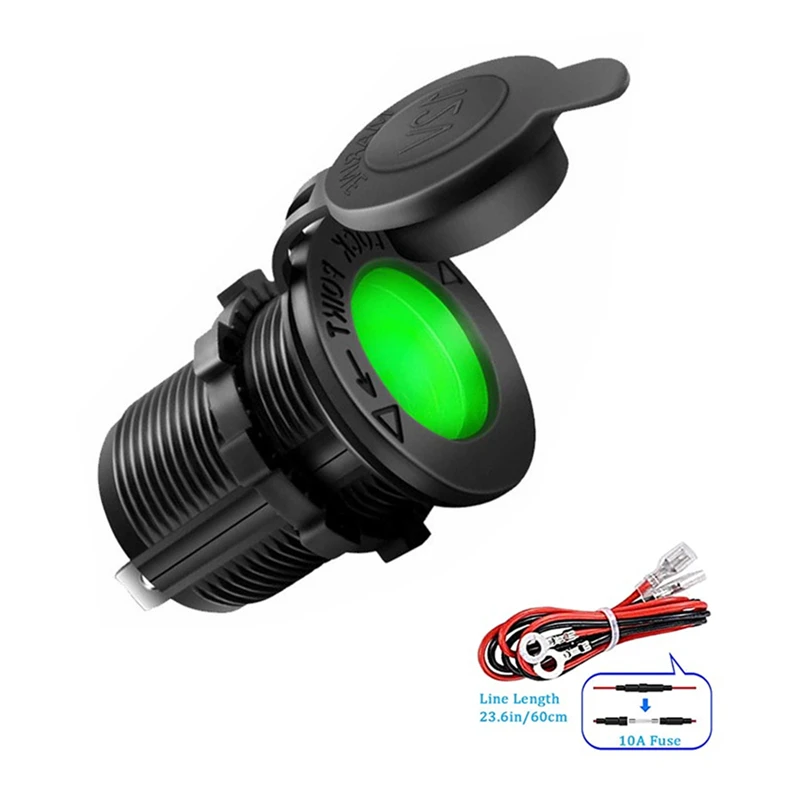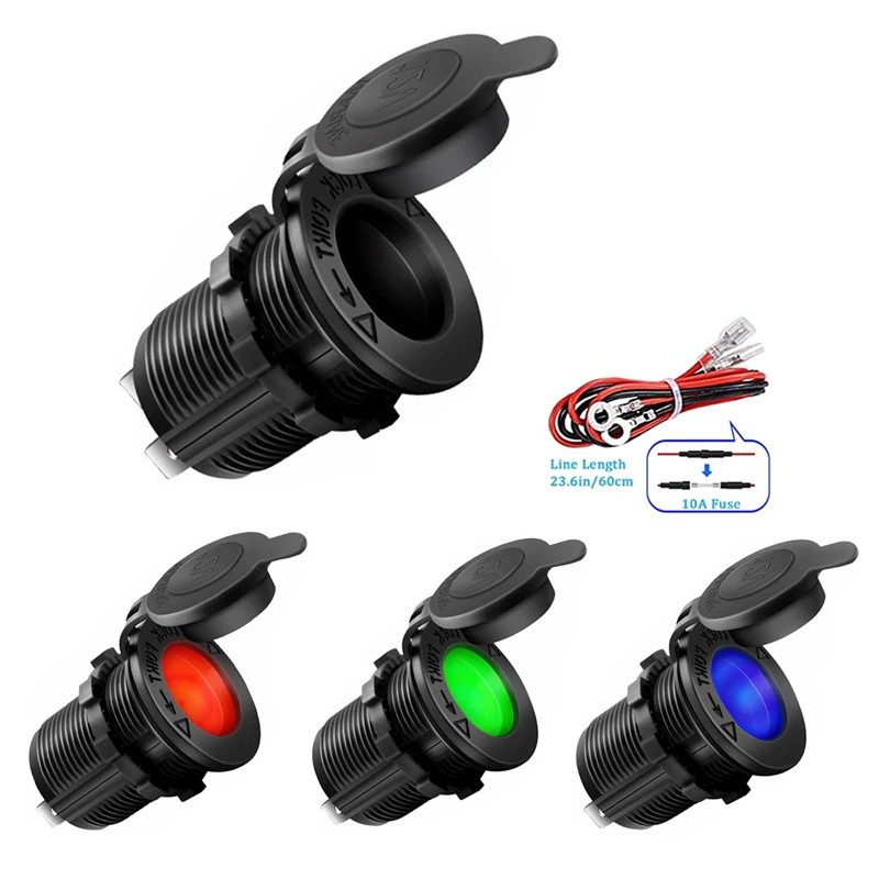 1. Тип: гнездо прикуривателя2. Цвет: красный, синий, зеленый, черный3,1 x прикуривателя сокет и 60 см предохранитель