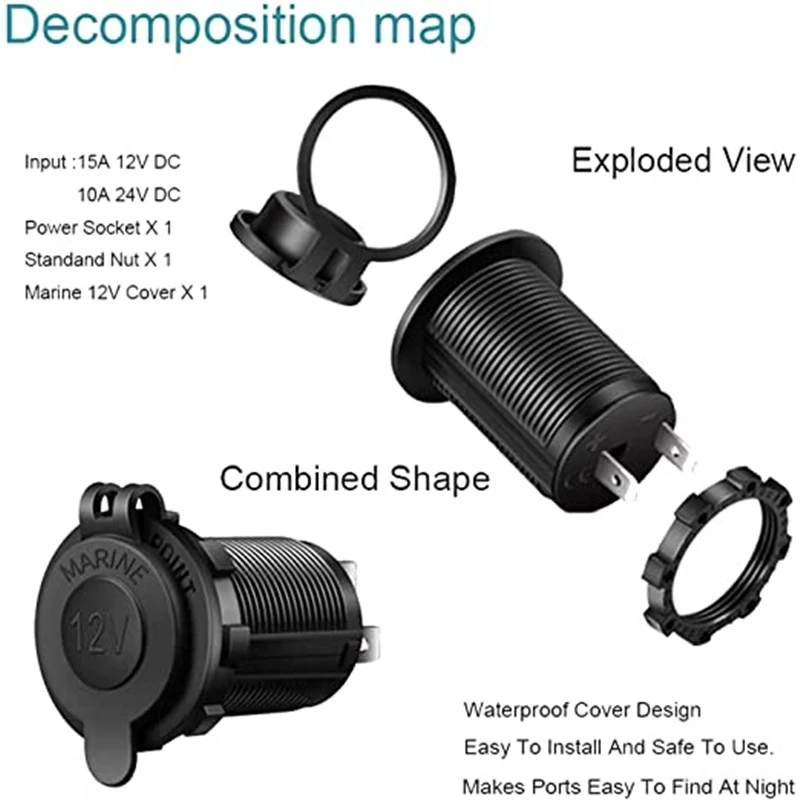 Водонепроницаемая розетка для лодки, мотоцикла, трактора, 12-24 В, розетка для автомобильного прикуривателя