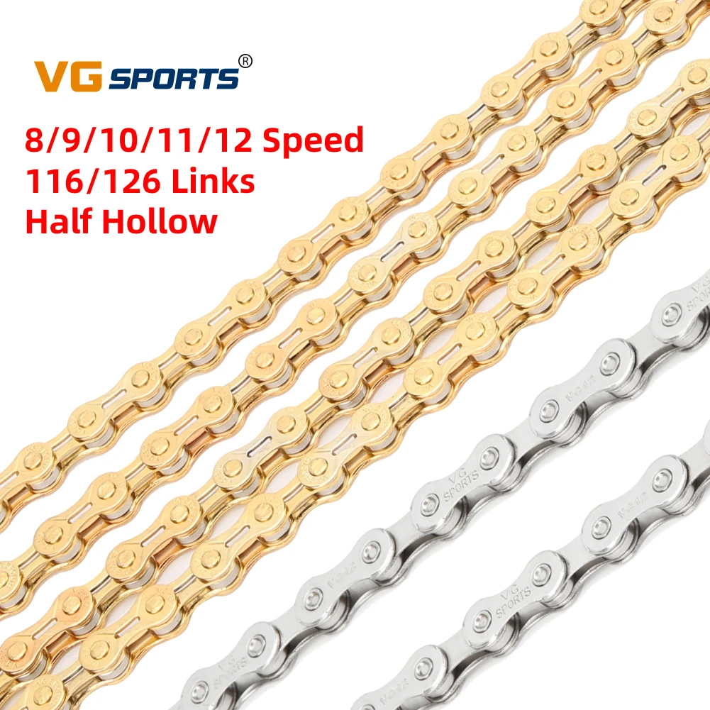 VG Спортивные 8/9/10/11/12 цепь для скоростного велосипеда половина полые 116 ссылки велосипед MTB Сверхлегкий 126 ссылки 1/2in x11/128in цепи