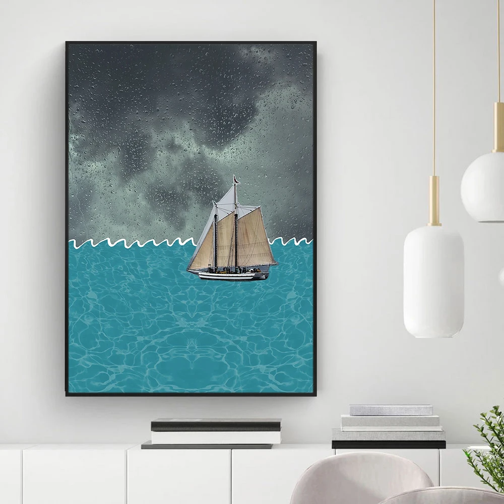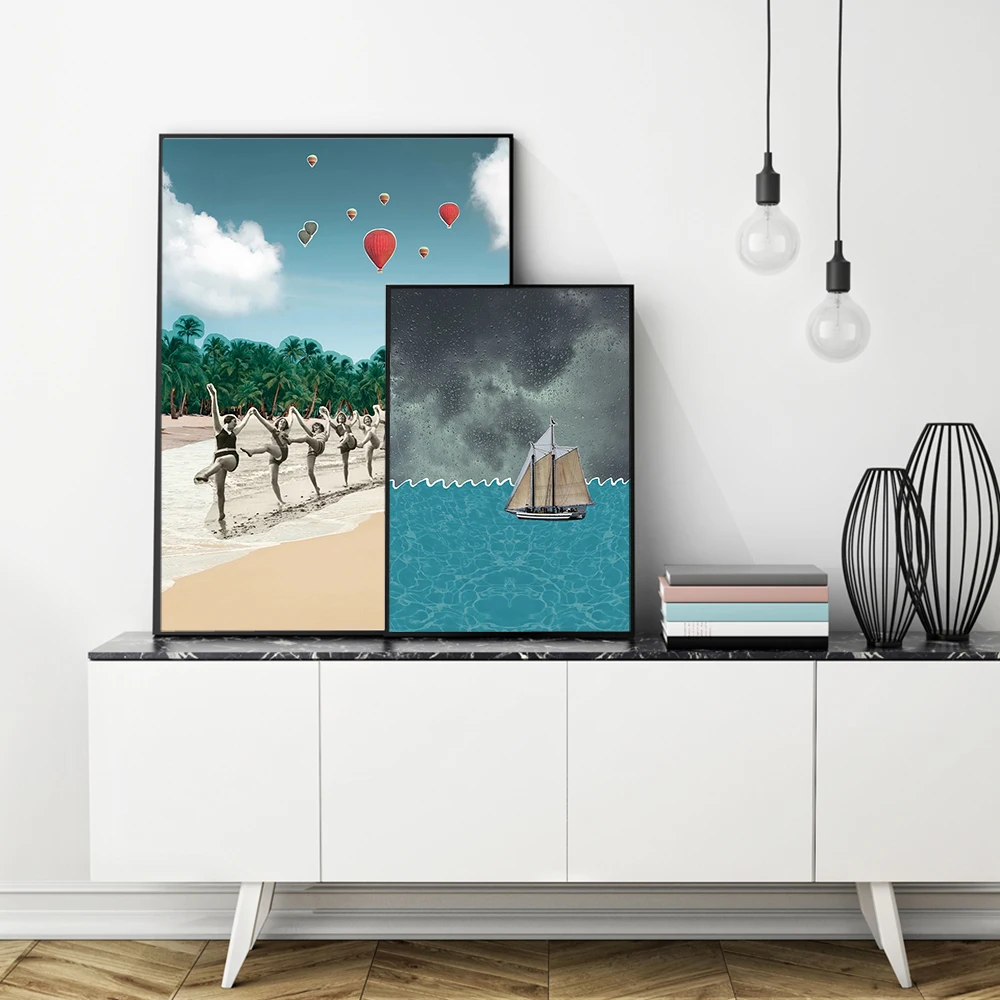 Настенный постер дневного света, Абстрактная Картина на холсте с изображением девушки на пляже, с изображением парусника, декор для спальни