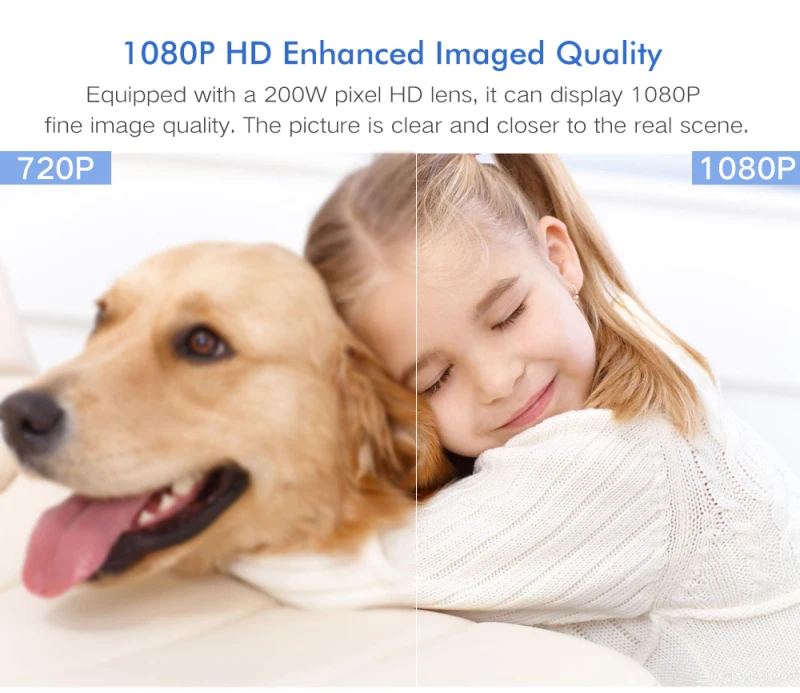 Улучшенное качество изображения 1080P HD оснащено hd-объективом 200 Вт, он может отображать хорошее качество изображения 1080P. Картинка четкая и ближе к реальной сцене.