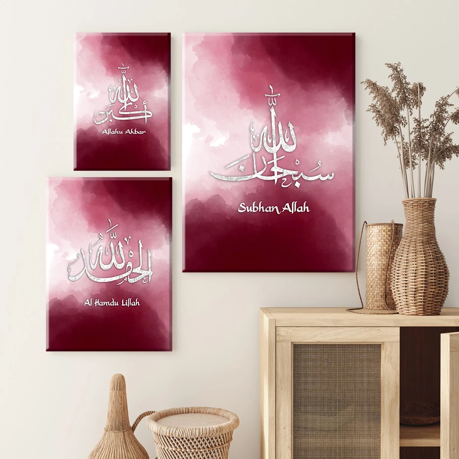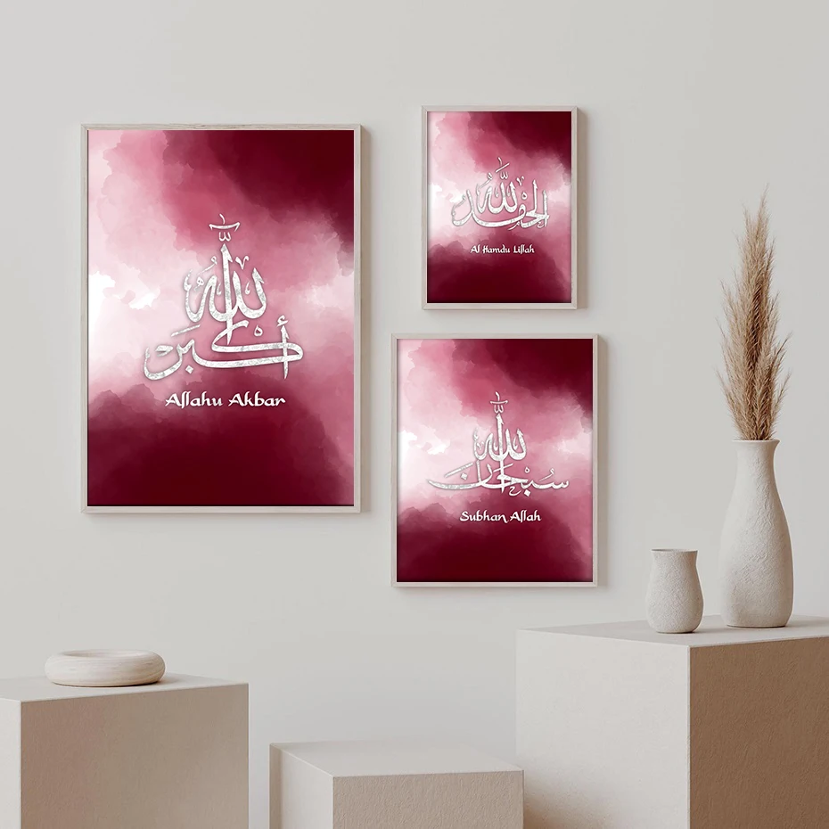 Абстрактный бордового цвета исламский холст с каллиграфией настенная живопись художественная печать фотографии Плакаты для Гостиная интерьера домашний декор