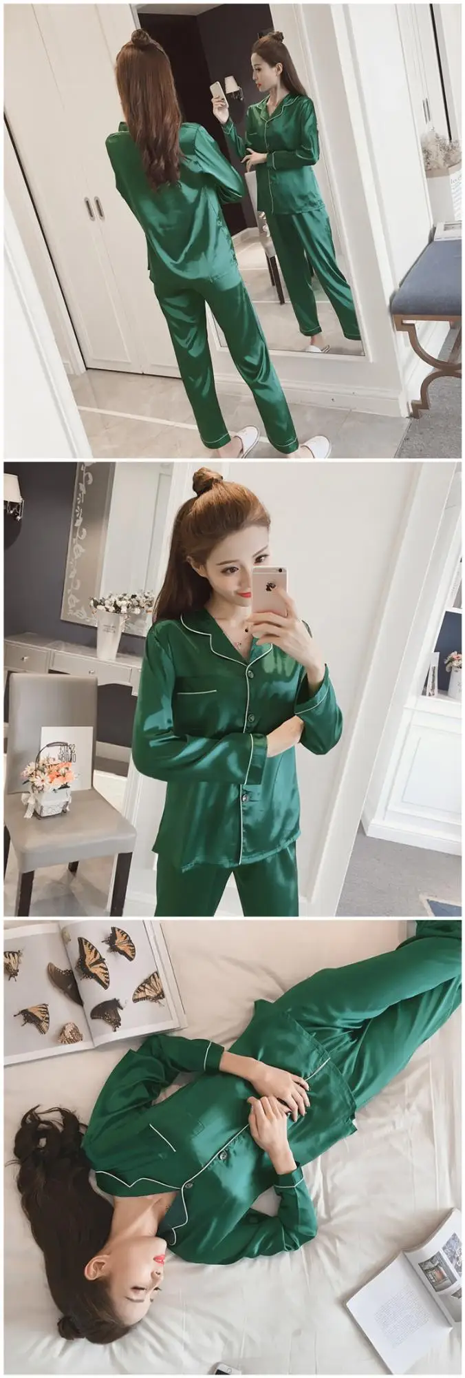 Шелковые атласные пижамы для женщин, пижамный комплект с длинным рукавом, одежда для сна, Женский комплект, Пижамный костюм, женский комплект из двух предметов, домашняя одежда
