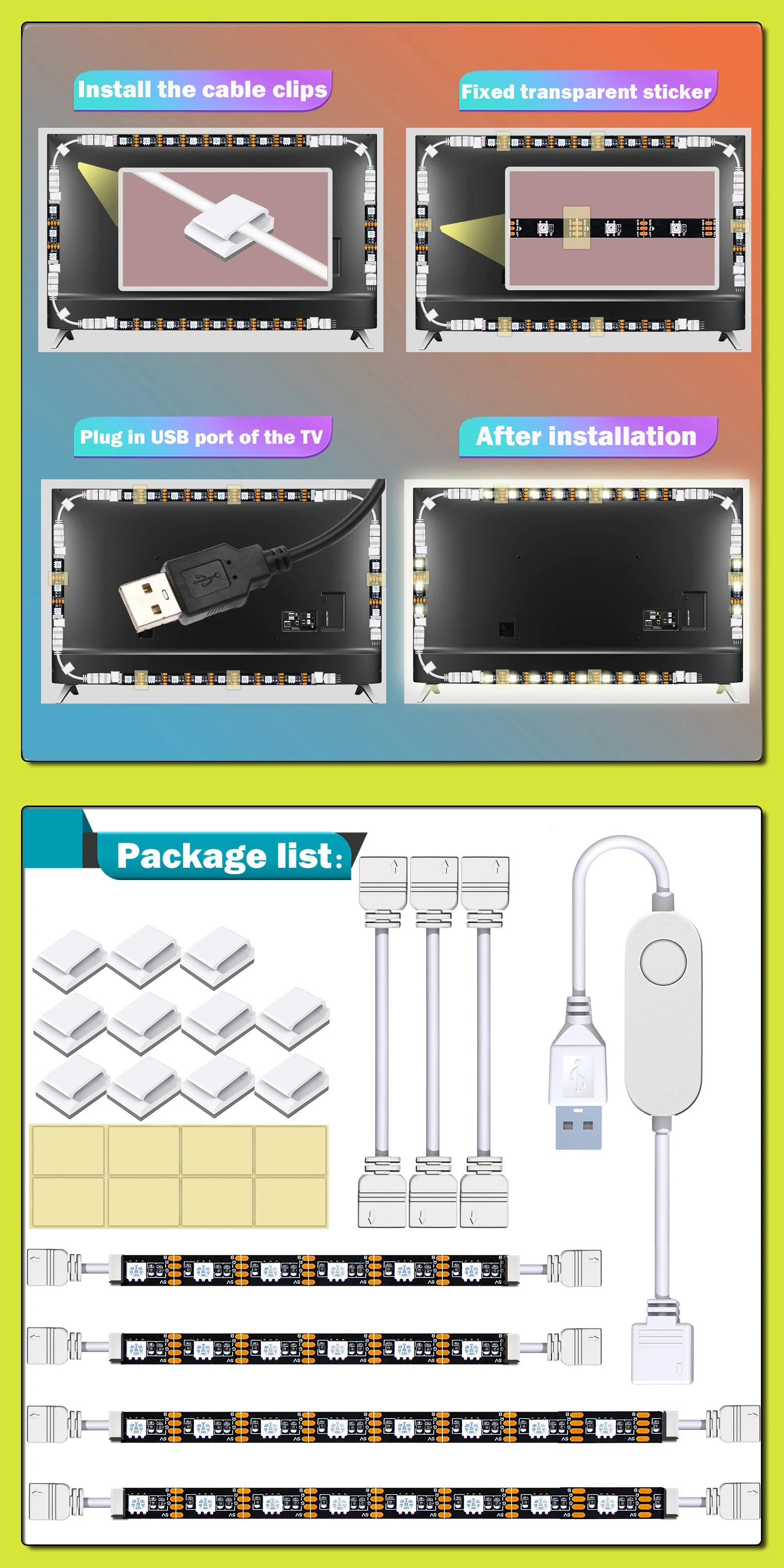 Светодиодная лента с разъемом для подсветильник Ки телевизора, гибкая лампа для телевизора с поддержкой Alexa 43IN-75IN, RGB, 5050SMD