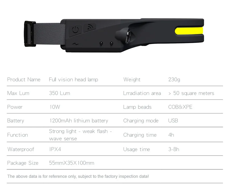 Лм COB налобный фонарь с датчиком, светодиодный индукционный налобн...