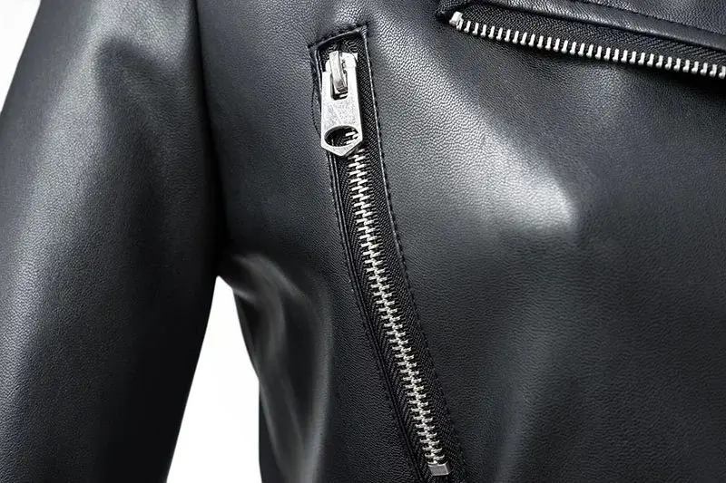 Женская байкерская куртка на молнии, Черная байкерская куртка из ис...