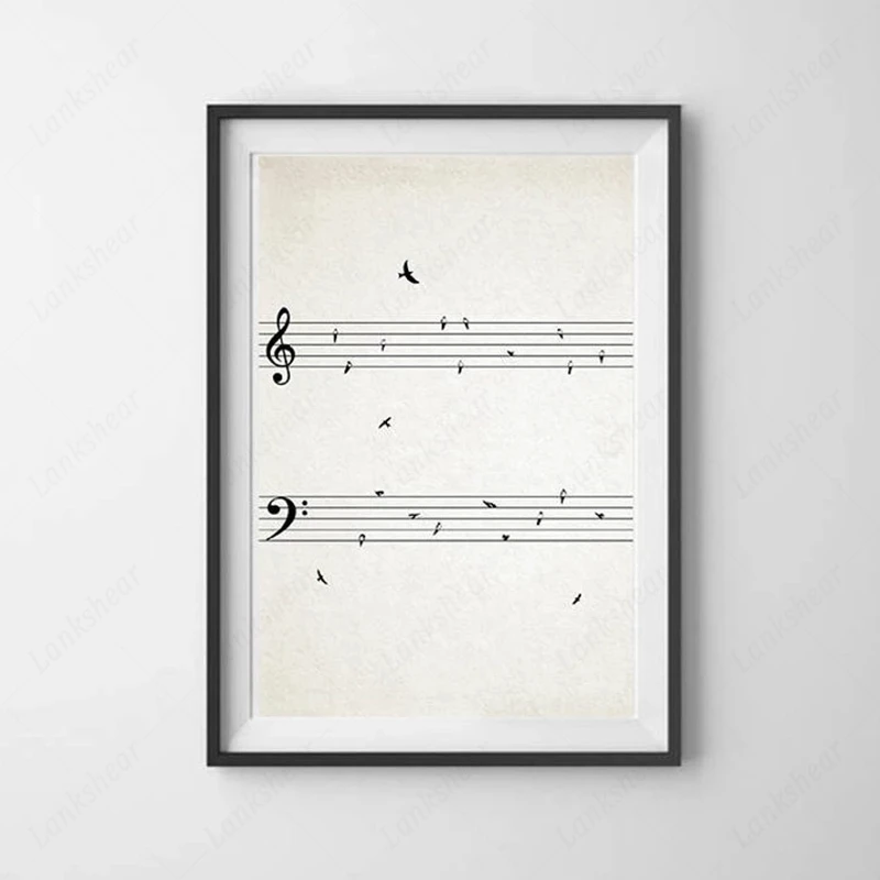 Ноты с птицами, винтажный постер, принты, музыка, настенная живопис...