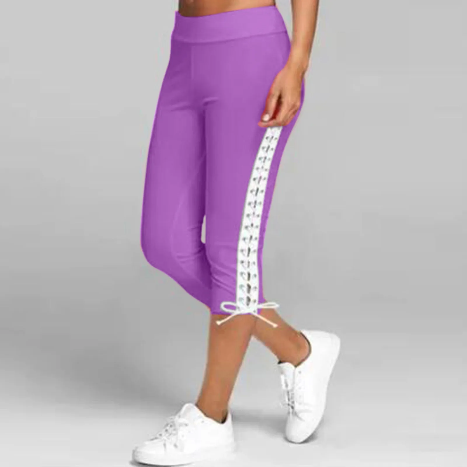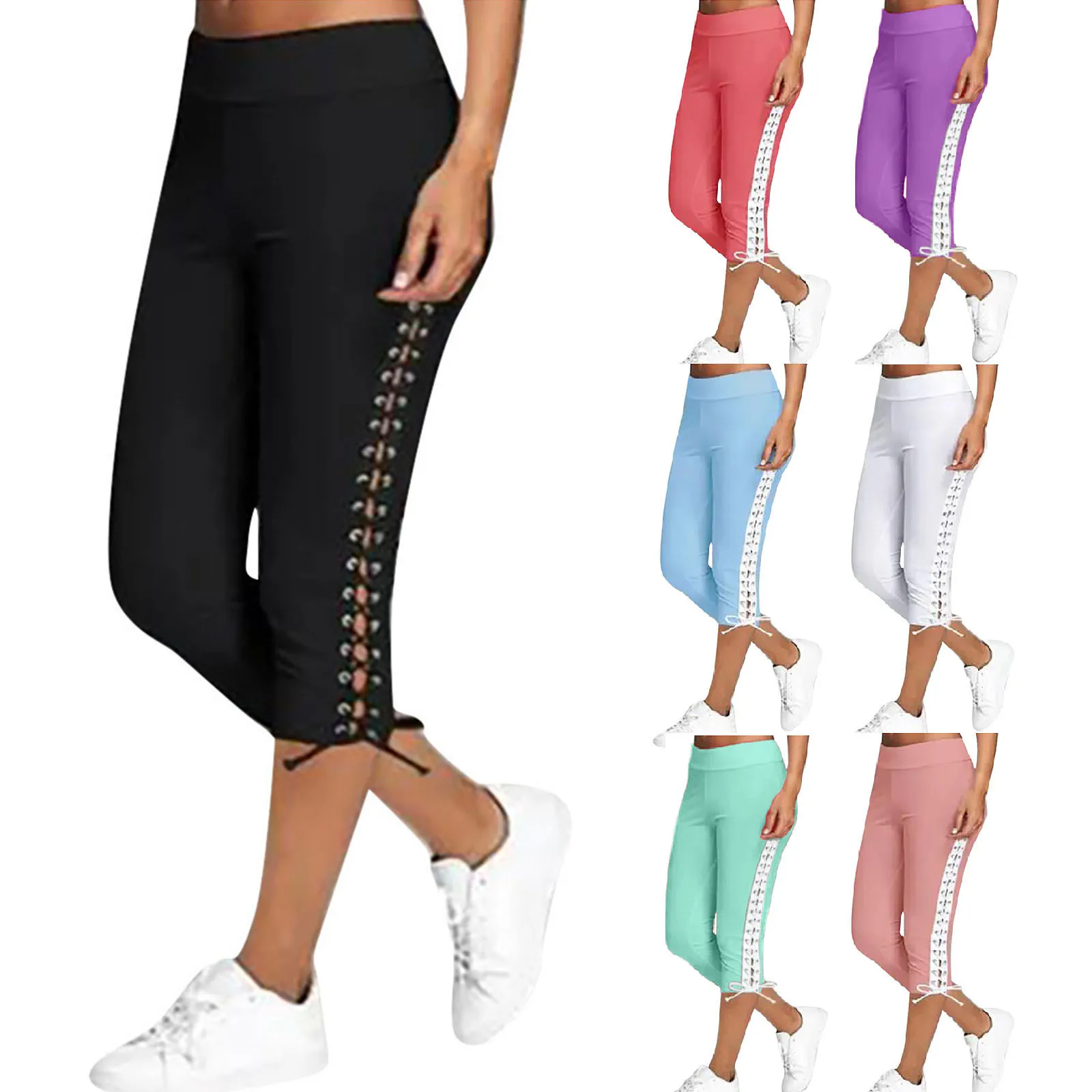 Леггинсы женские спортивные, модные однотонные бандажные укороченные с эластичным поясом, повседневные спортивные штаны для фитнеса, 2021