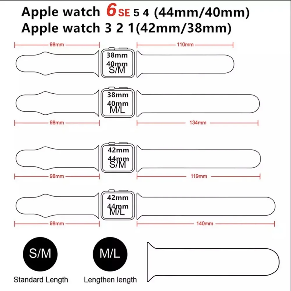 Мы продаем размер 42 мм m/l ,s/m, 38 мм Размер s/m,m/l 42 мм = 44 мм; 38 мм = 42 мм посылка включает в себя: 1 цветной силиконовый ремешок для часов