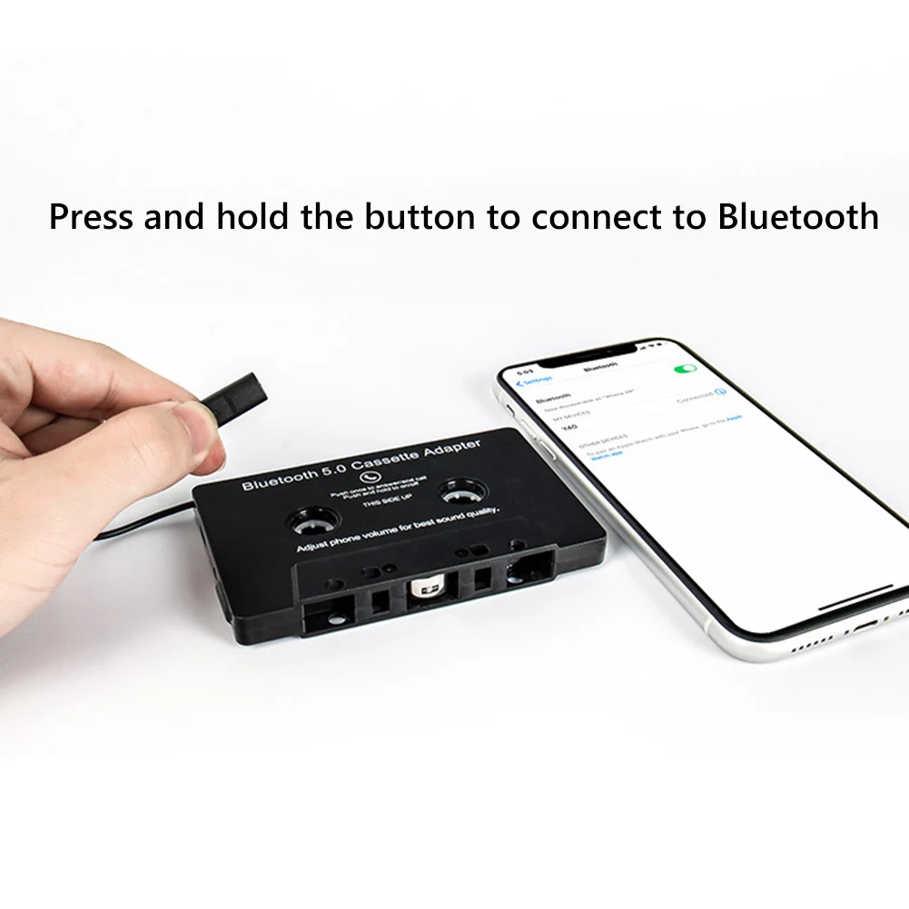 Адаптер Bluetooth band включает в себя долговечную батарею, которая подходит для длительных поездок. С функцией Bluetooth, вы можете слушать музыку во время зарядки в качестве порта зарядки, Переключатель ВКЛ/ВЫКЛ и Кнопка микрофона могут быть размещены за пределами кассеты.