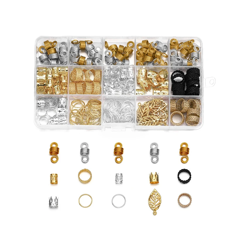 200 шт.лот винтажная металлическая оплетка для волос, кольца, аксессуары, зажимы для женщин и девочек, набор бусин для дредов, цвет золото и серебро, сделай сам