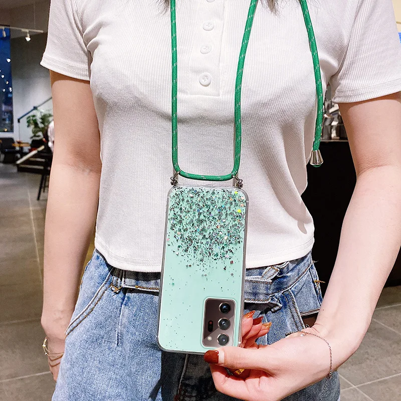 ColorBlack Purple Green Pink Cute Lanyard Glitter Foil Powder Case
