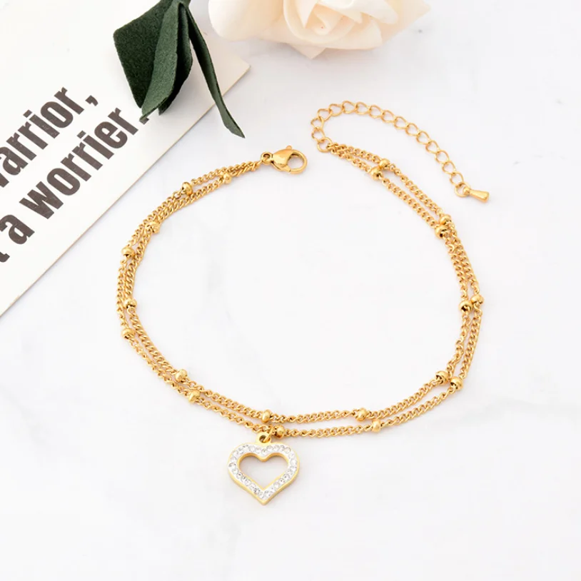 316L нержавеющая сталь Новая мода высокосортное ювелирное изделие с микой встроенный Циркон любящее сердце Форма очарование 2 Слои и украшениями в виде цепочек и кругов из бисера браслет для женщин