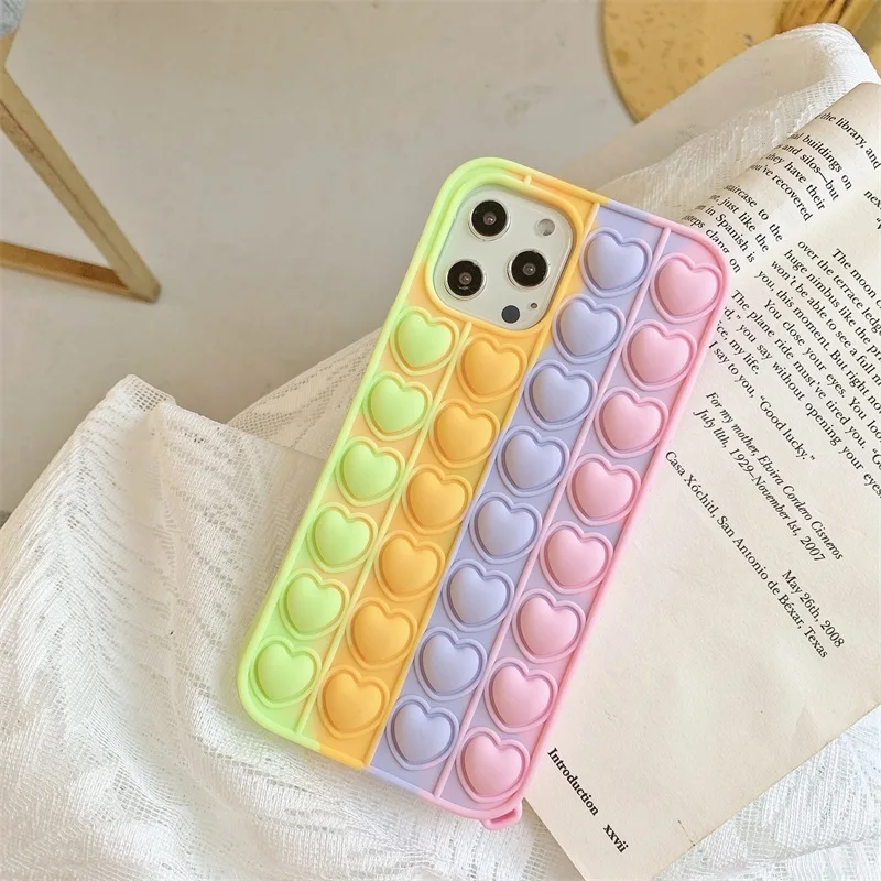 Модный силиконовый чехол с пузырьками в виде сердечек для Iphone 13, 12 Pro, SE, 7, 8, 6, 6s Plus, X, XR, XS Max, мягкий чехол-накладка
