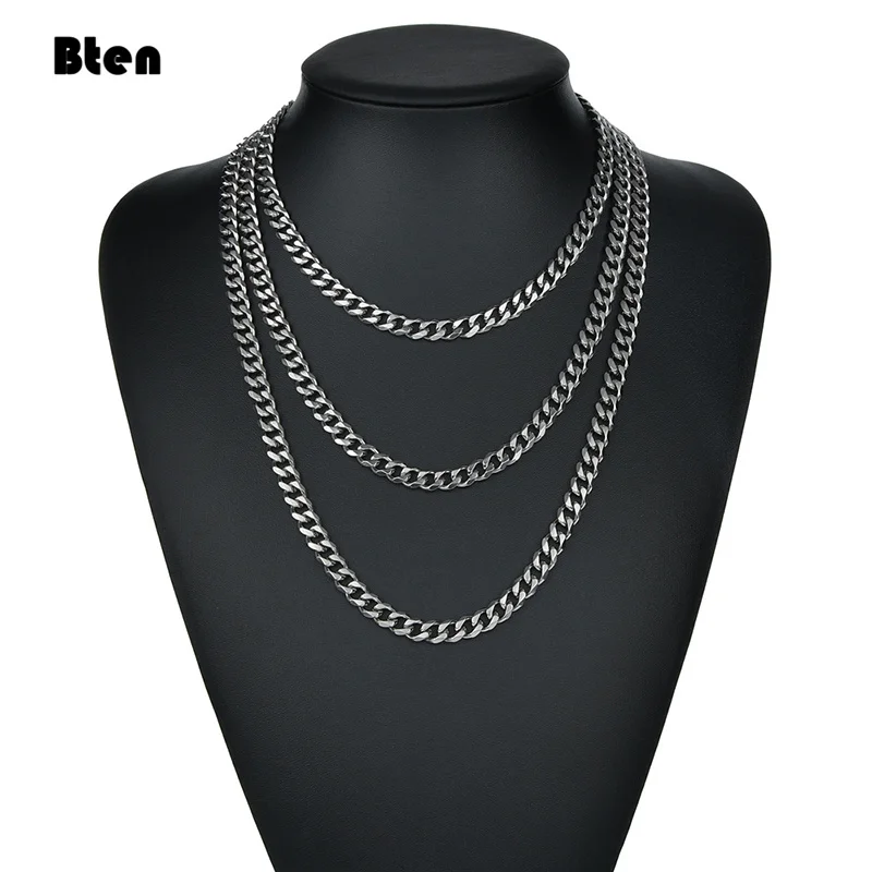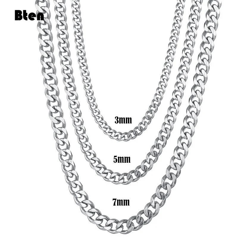 Цепь из нержавеющей стали с кубинским плетением шириной 3 мм и 7 мм, цепочка-чокер, ожерелье для мужчин, ювелирное изделие с серебряным покрытием, модные ювелирные изделия из твердого металла
