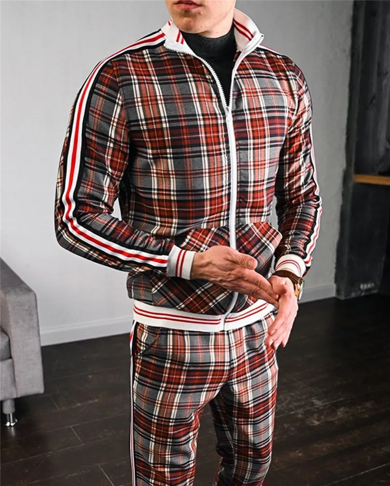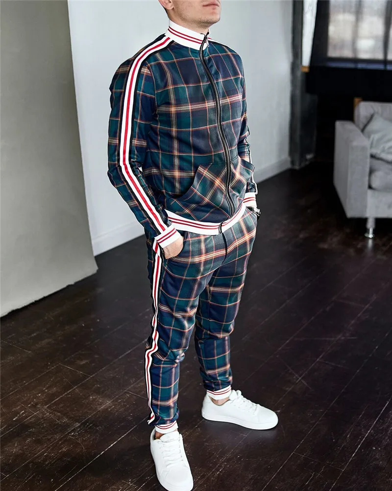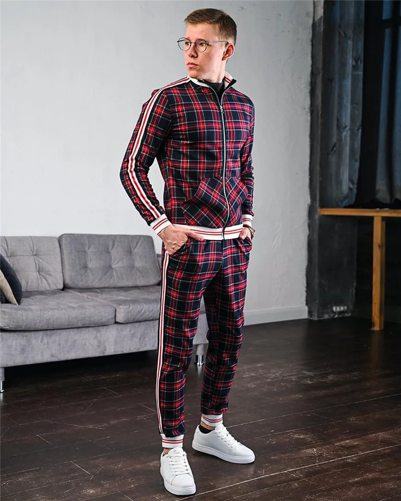 Мужской спортивный костюм весна-осень, модный клетчатый спортивный ...