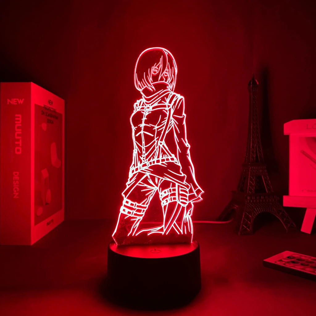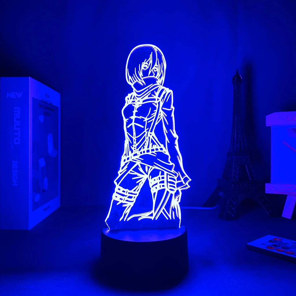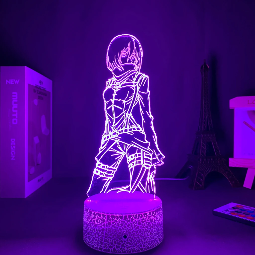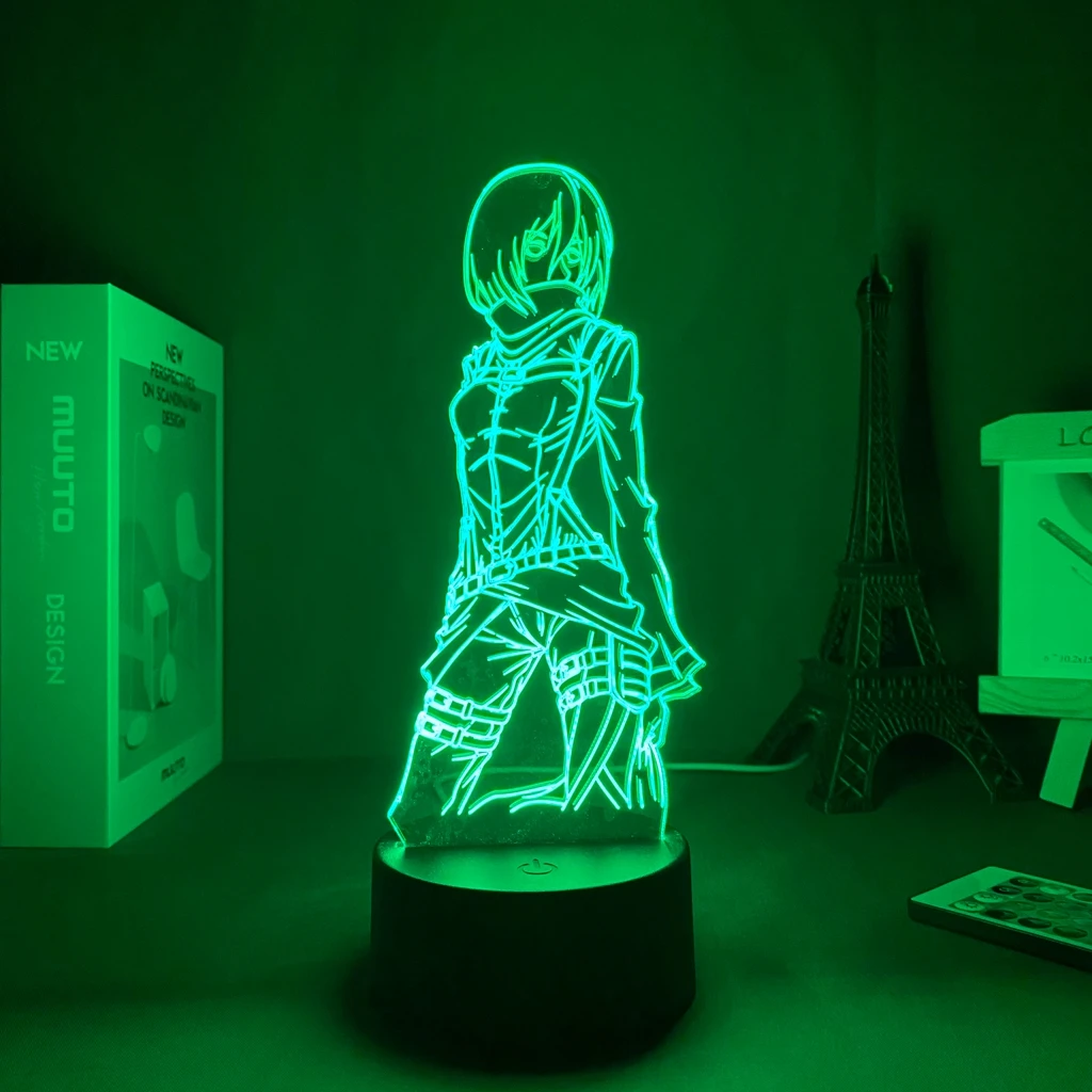 3D лампа аниме атака на Титанов Mikasa фигурка Акермана детские Ночники для украшения комнаты светодиодные Меняющие цвет