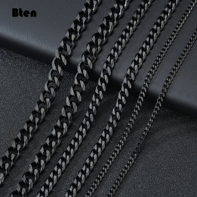 Цепочка BTEN из нержавеющей стали для мужчин и женщин, ожерелье из кубинской цепи черного, золотого, серебряного цвета, 357 мм
