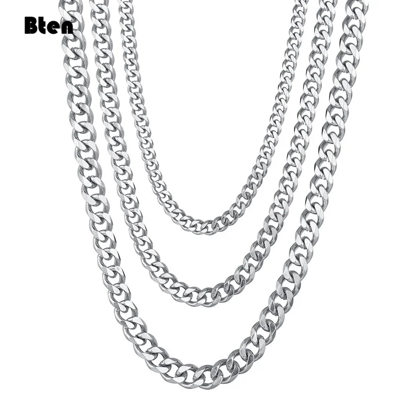 Мужская цепь из кубинской панцирной цепи BTEN, ожерелье из нержавею...