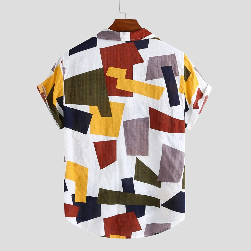Мужская пляжная рубашка, с геометрическим принтом, с коротким рукавом, с отворотом, на пуговицах, для отдыха, 2021, уличная одежда, M-3XL