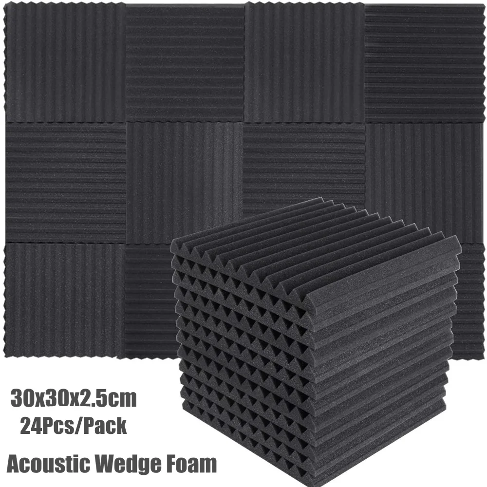 24 шт./упак. 30x30x2,5 см акустические плитки для пены Панель плитка для студии Звукоизоляционная пена настенная панель комнаты звукоизоляция обработки с лентой