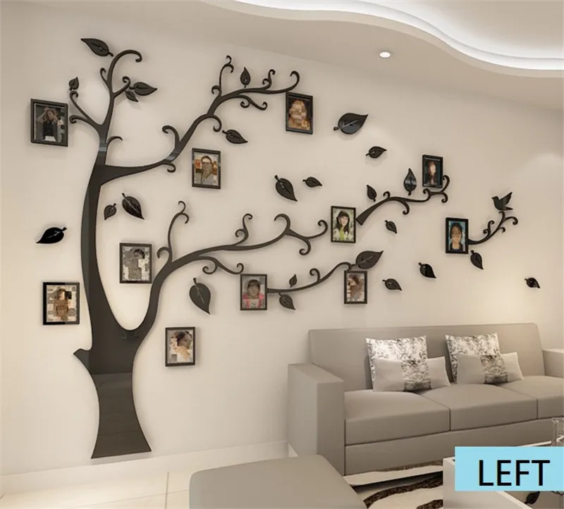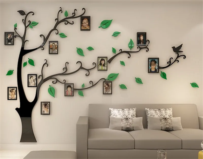 3D акриловое дерево фото наклейки на стену в раме хрустальные зеркальные наклейки Наклейка на ТВ фон настенная DIY семейная фоторамка Настенный декор