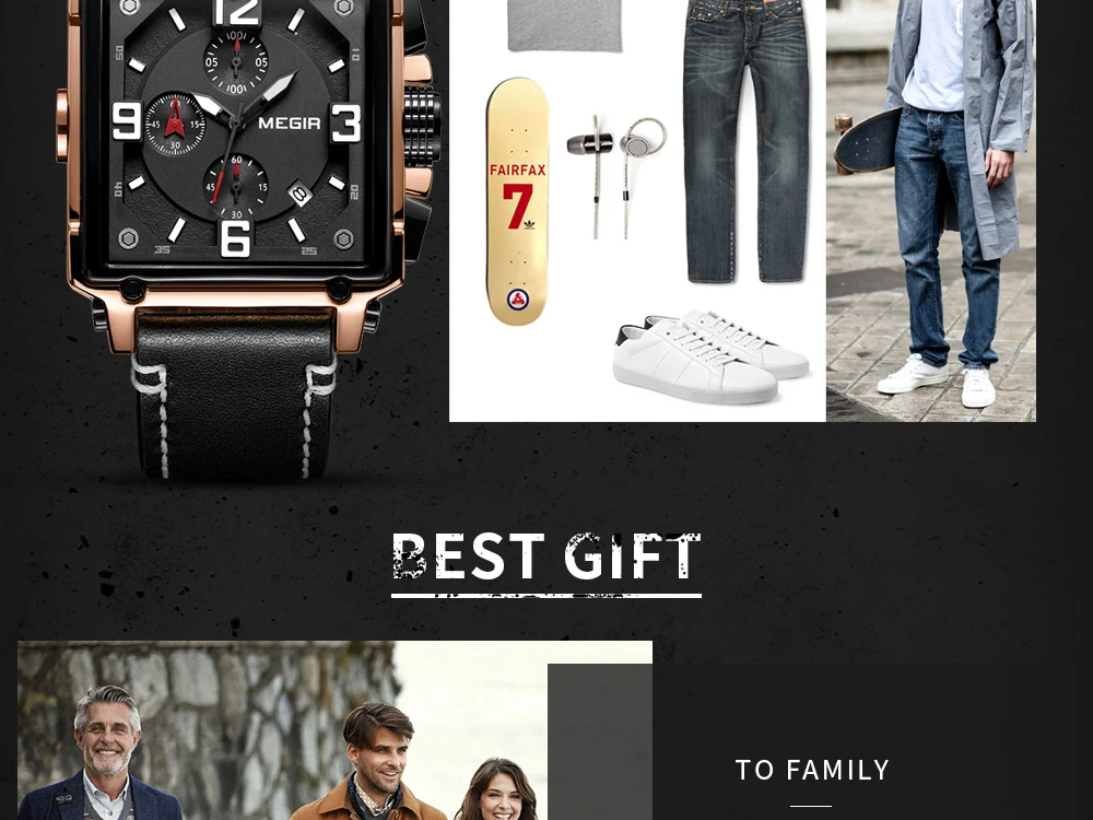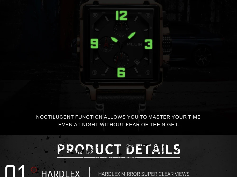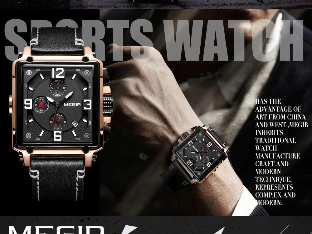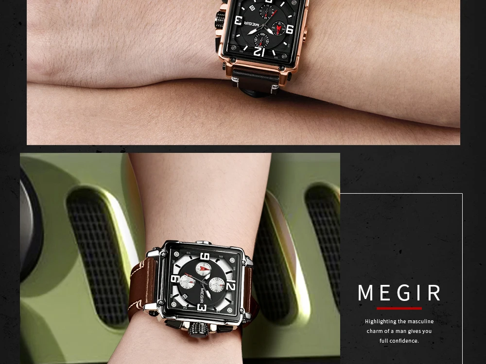 MEGIR Для мужчин большой циферблат Роскошные Лидирующий бренд Кварц...