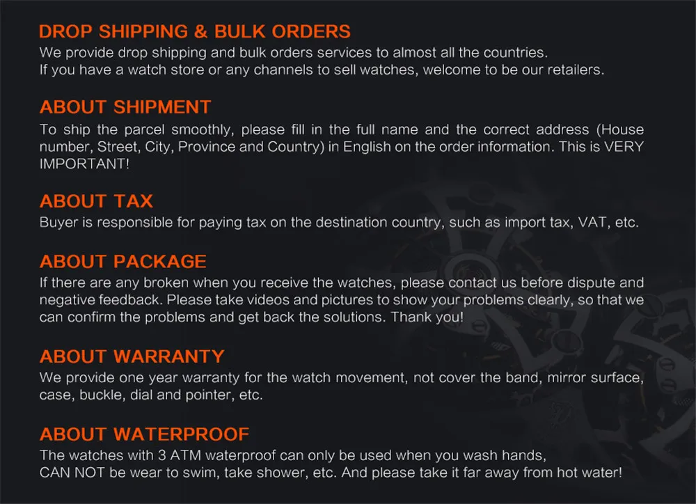 Package ContentMale Watch; Elegant Box; Watch Tool; Clean Cloth