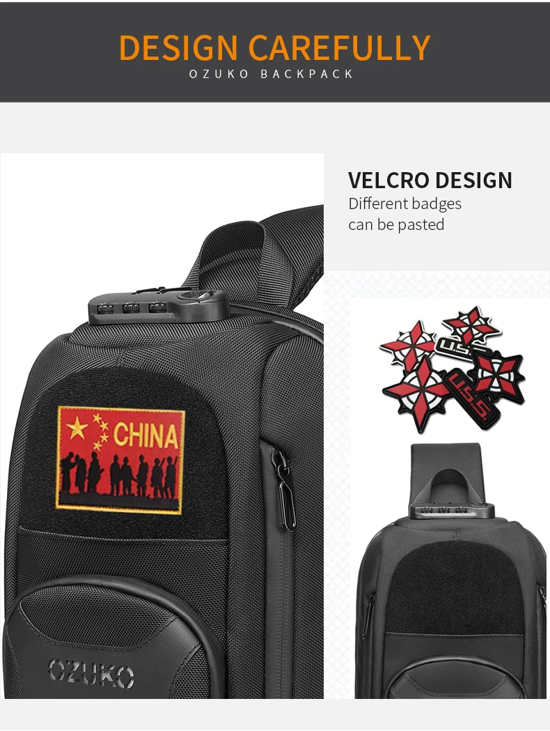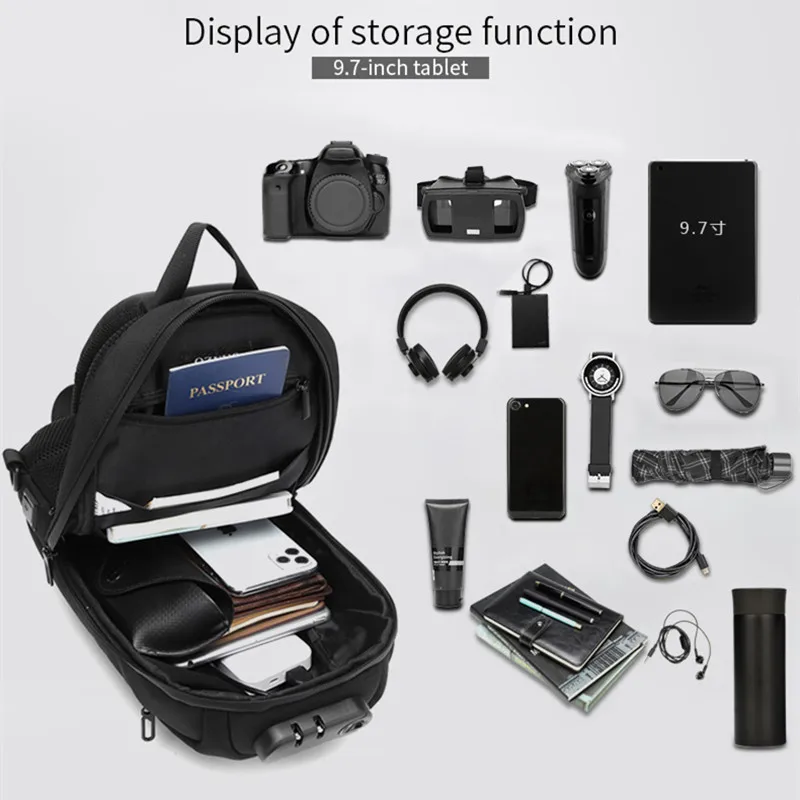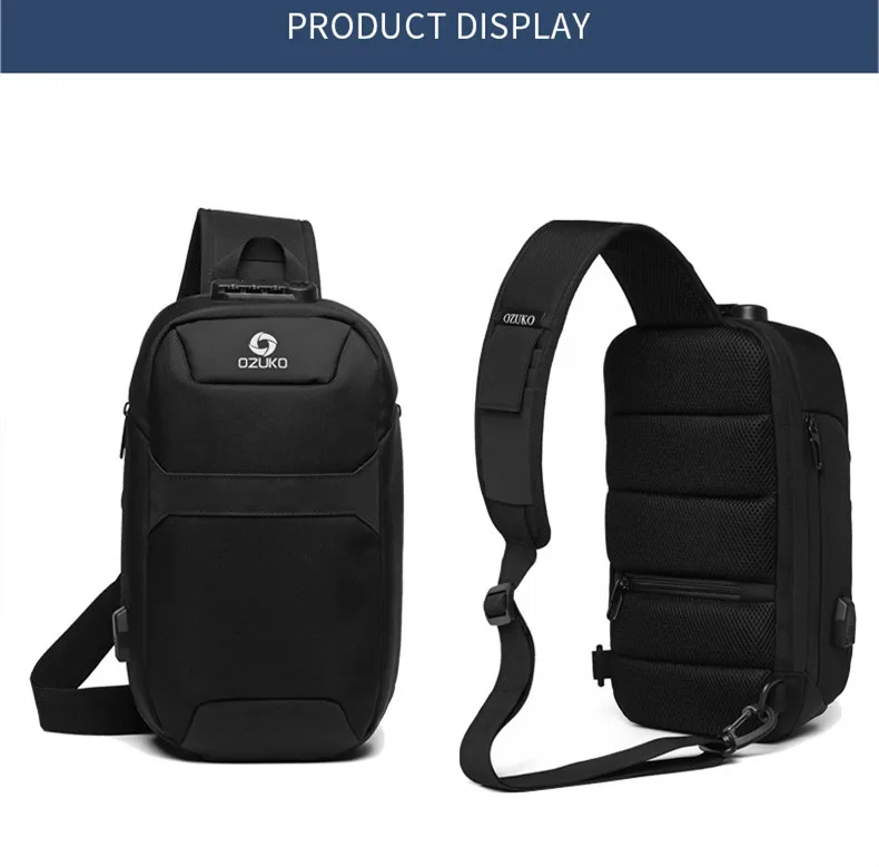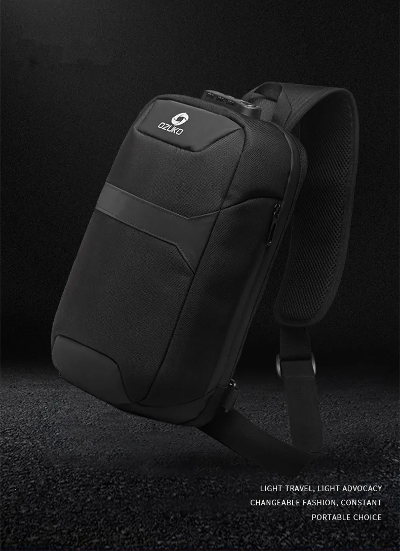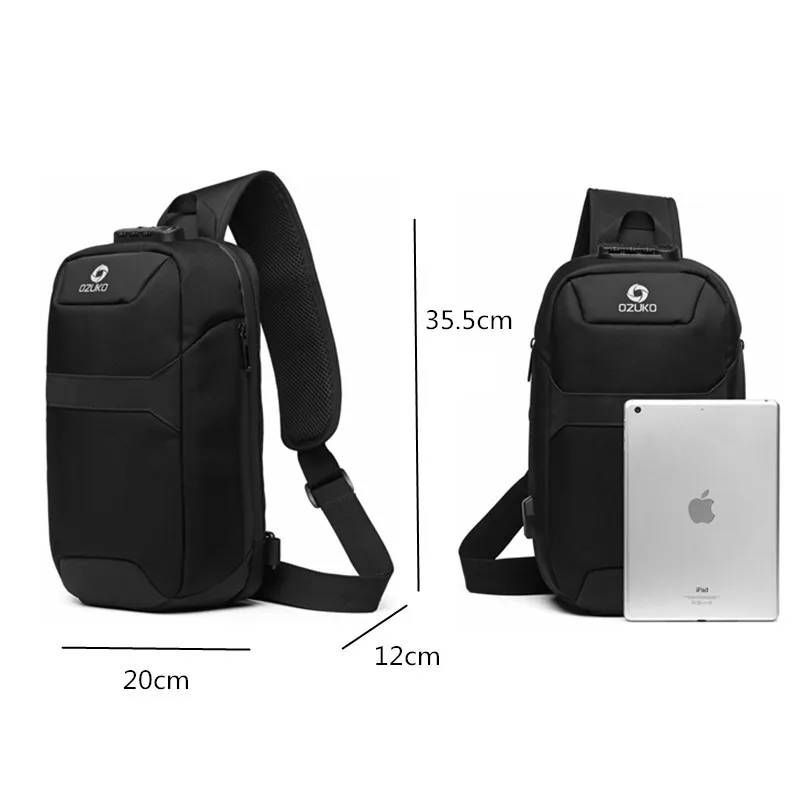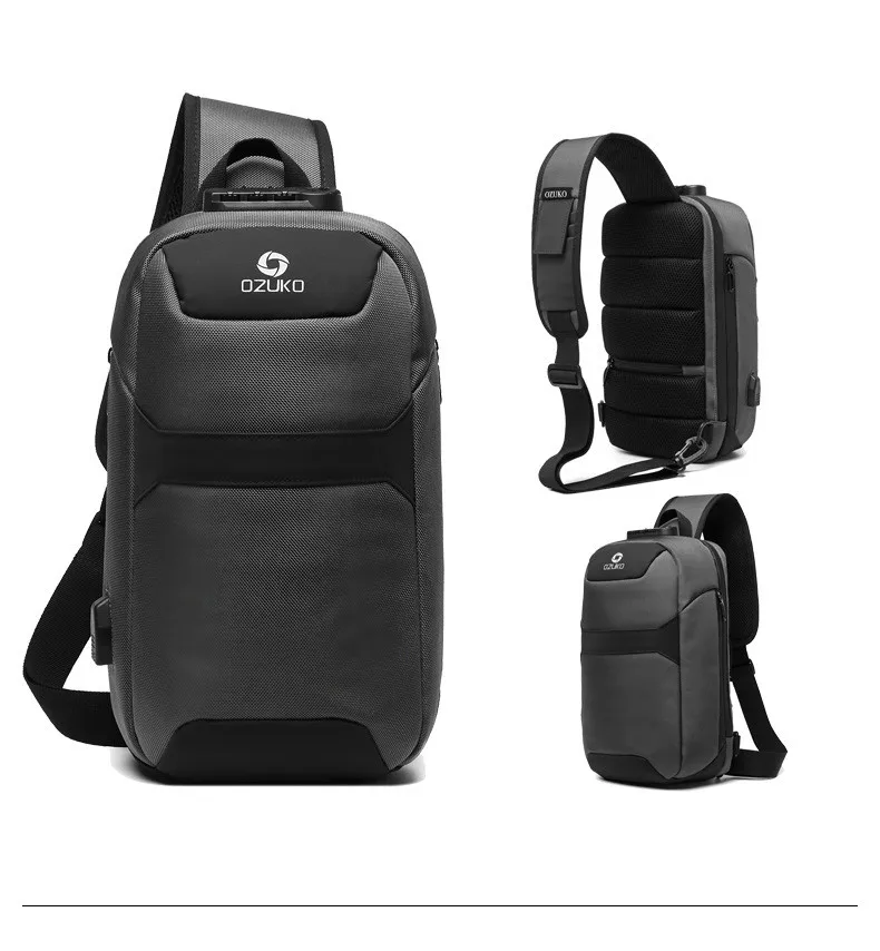 Нагрудная сумка OZUKO для мужчин, многофункциональный водонепроницаемый ранец на одно плечо, уличная сумка-мессенджер с USB-зарядкой, 9,7