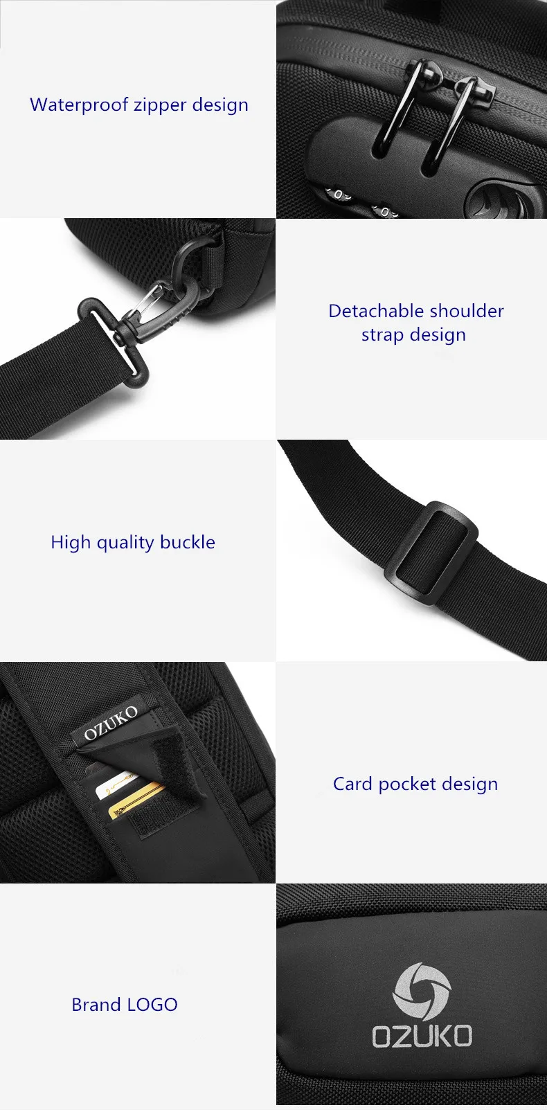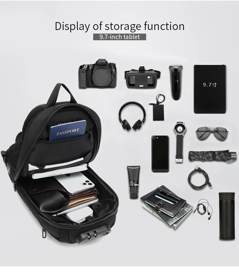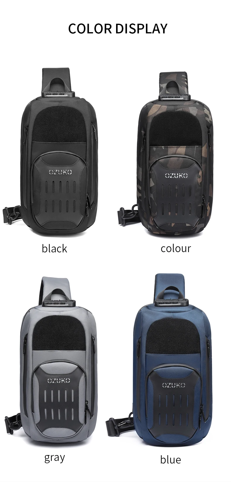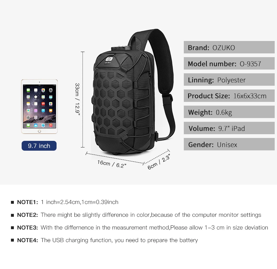 Нагрудная сумка OZUKO для мужчин, многофункциональный водонепроницаемый ранец на одно плечо, уличная сумка-мессенджер с USB-зарядкой, 9,7