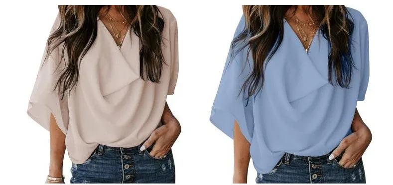 Новая летняя 2021 модные и элегантные все-матч шифоновая рубашка свободного кроя, с v-образным вырезом, повседневные расклешенные средней длины, Детская рубашка с длинными рукавами для женщин