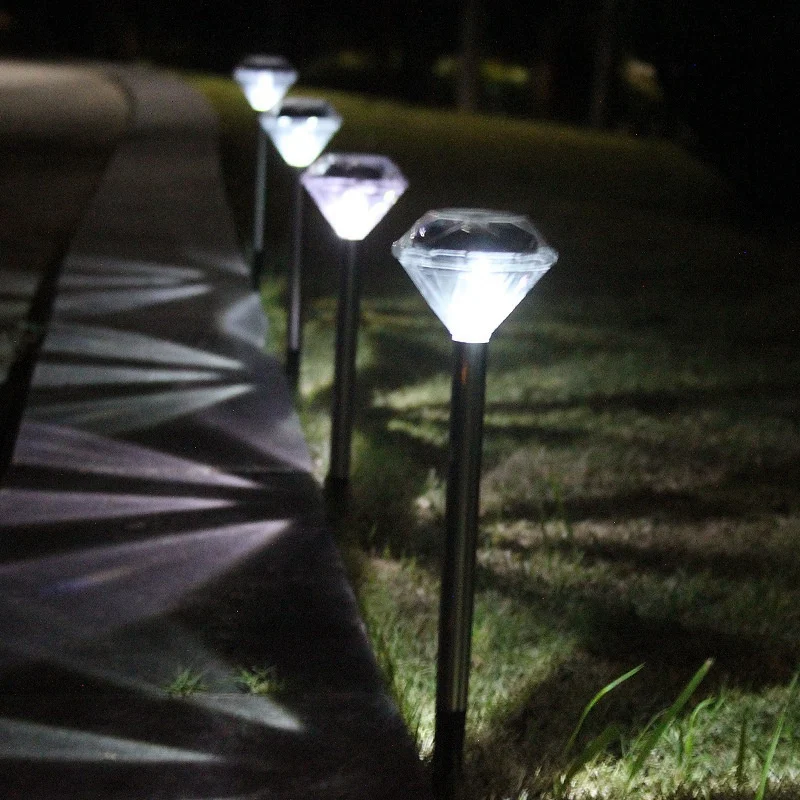 Солнечный светильник светодиодный светильник лужайки прямой полюс кристалл алмаза лампы Открытый водонепроницаемый сада парка Вилла путь Декорации для ландшафтного дизайна светильник Инж