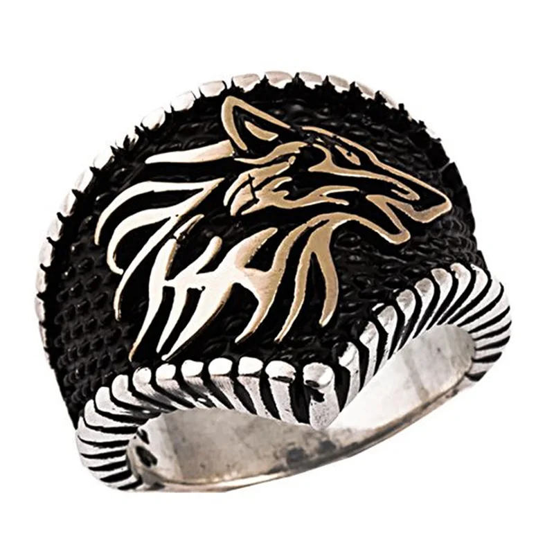 3D реалистичное властное перстень в стиле панк волк с головой драко...