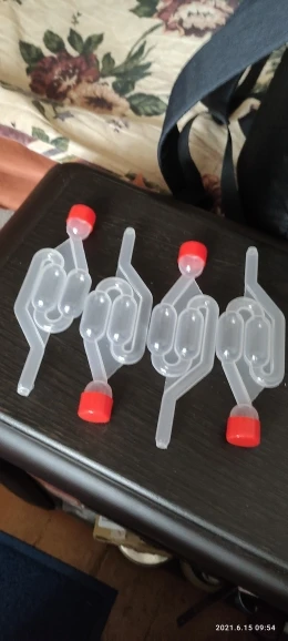 Для изготовления вина гидрозатворы, водяные затворы. Быстрая доставка за 14 дней без вопросов. Я думал они меньше. Они крупные. С виду всё очень хорошо и хорошо будут работать. Продавцу можно доверять. Пластик толстый. Центральный бак прожать не получается, крайний бак более мягкий, наверно позднее пойму для чего такое удобство. Желаю магазину хороших покупателей.