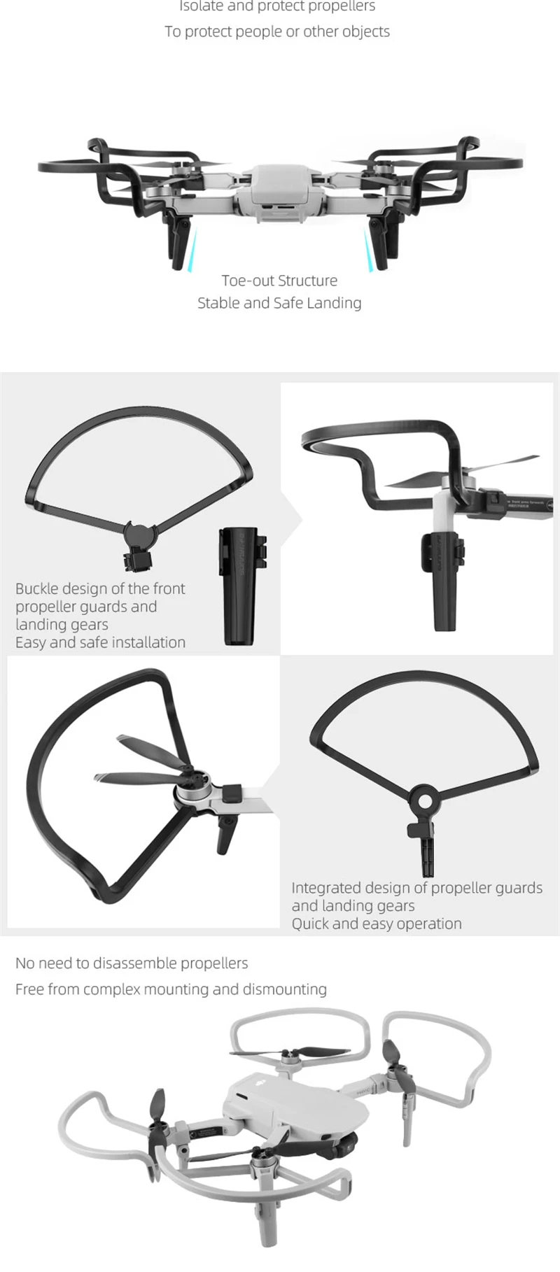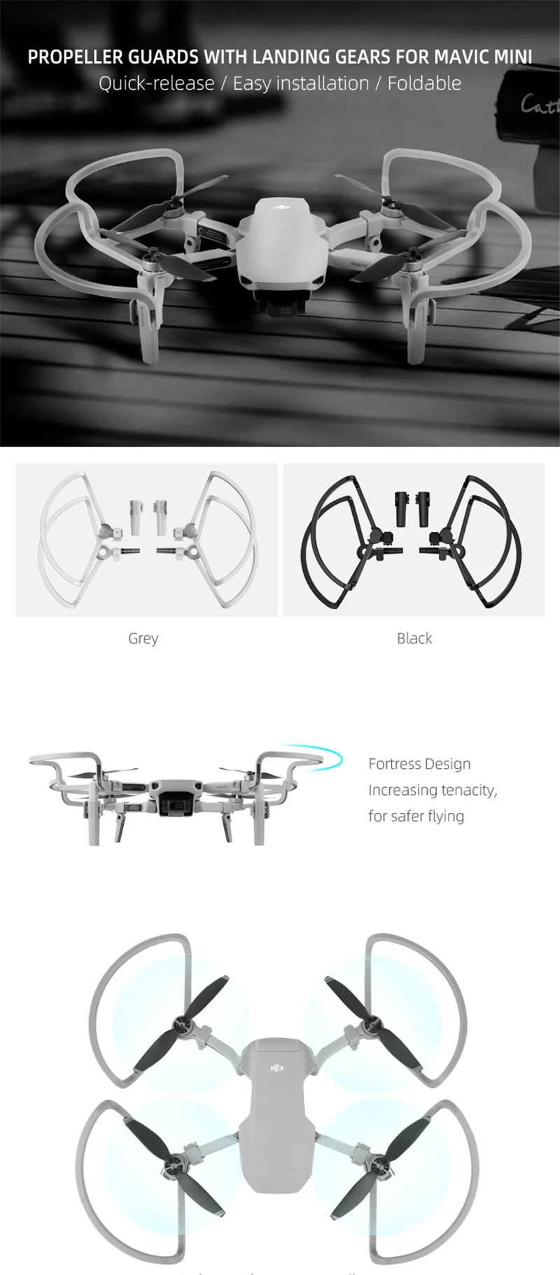 Особенности:-Вес нетто: 49 г (весь комплект)-Простая установка и быстрый выпуск.-Изолируйте пропеллеры для защиты людей или других объектов.-Складные посадочные стабилизаторы, удобные для хранения.-Нет необходимости разбирать пропеллеры при установке.