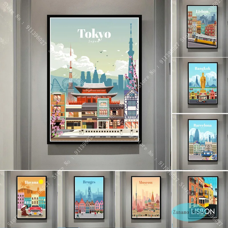 Постер ZT817, изображение Токио, Лиссабон, Барселона, путешествия по городу, мир, HD-печать, холст, Настенная картина для гостиной, винтажный Декор для дома