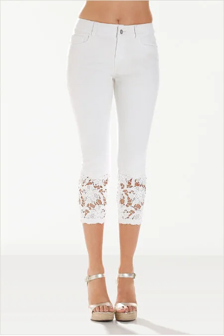 Новые джинсы для женщин, кружевные Комбинированные брюки длиной до ...
