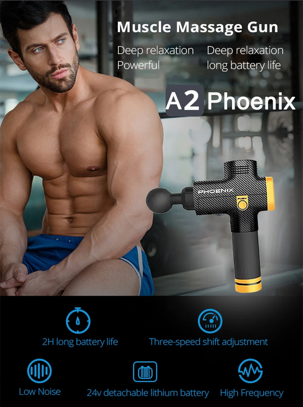 Высокочастотный массажный пистолет для расслабления мышц, Электрический массажер для расслабления тела с портативной сумкой для фитнеса Phoenix A2
