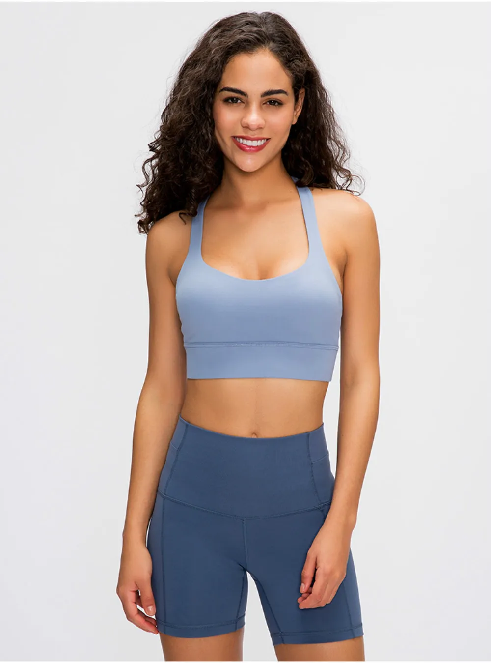 Спортивный бюстгальтер GUTASHYE телесного цвета с перекрестной спиной, бюстгальтер для йоги с эффектом пуш-ап, противоударные бюстгальтеры для фитнеса, тренажерного зала, фитнеса, кроп-топы, Женские Простые бюстгальтеры для йоги и тренировок