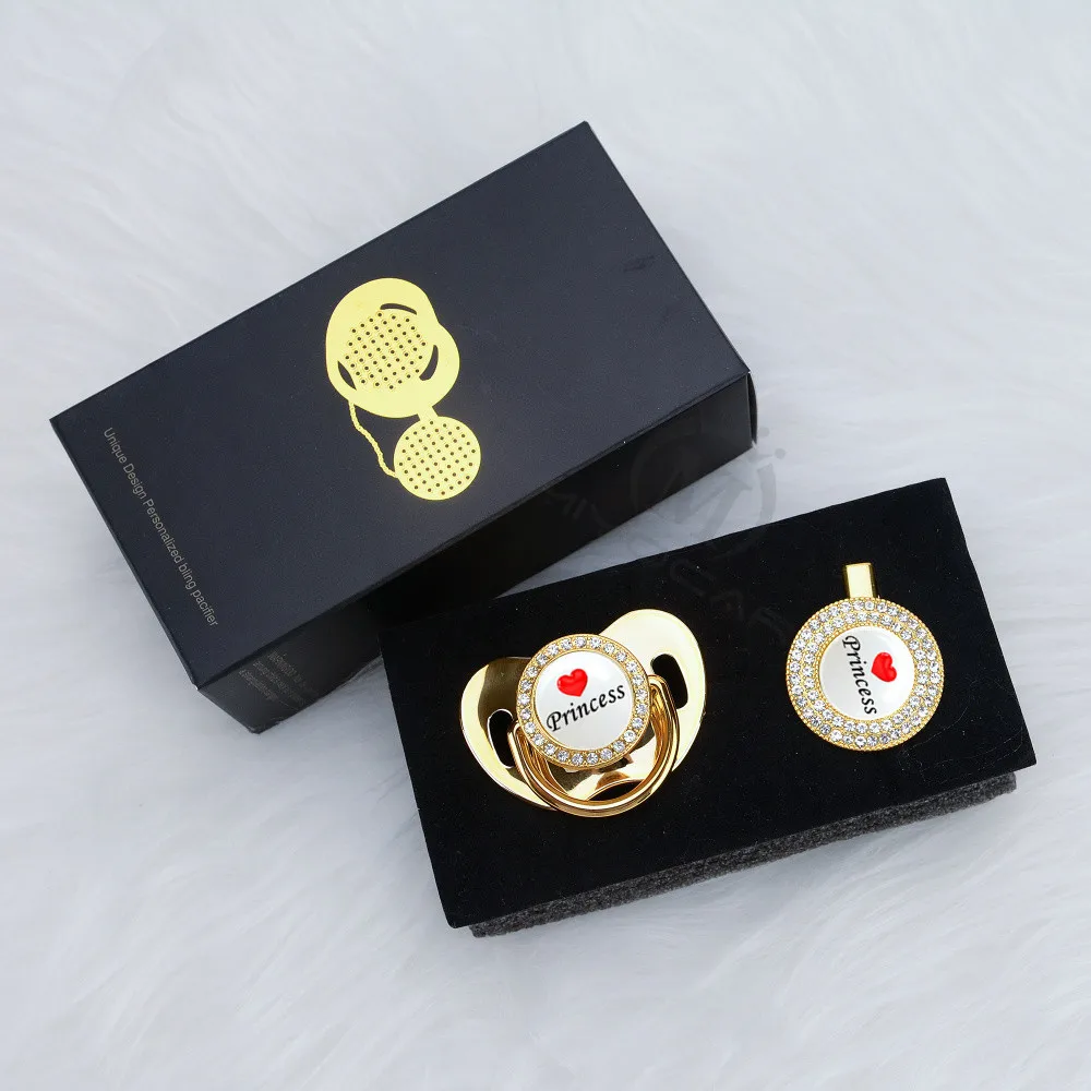 Мы хотели убедиться, что соска в безопасной и элегантной подарочной коробке. Отделанный черным и золотым цветом, это прекрасный подарок для родителей, который привносит в мир Новый светильник.