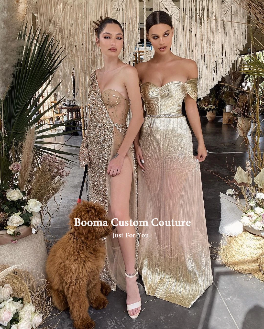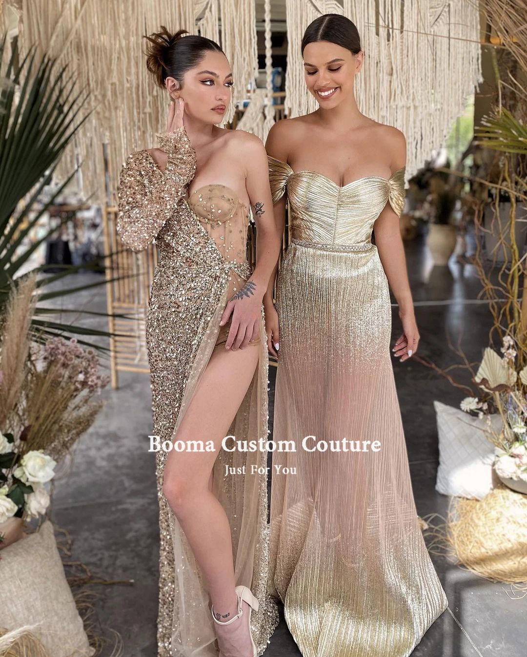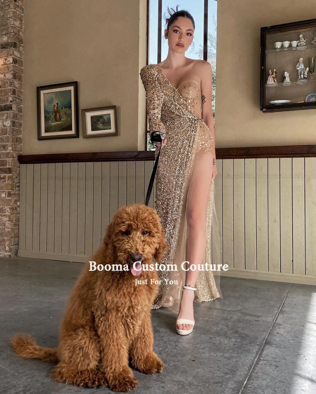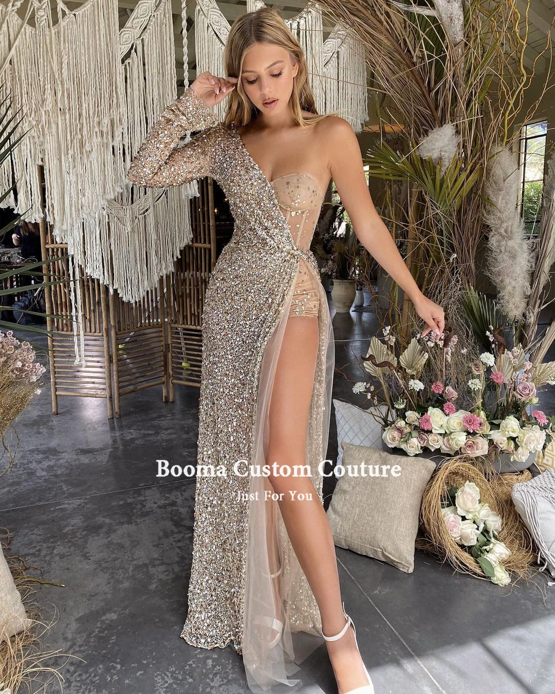 Вечерние платья Booma, с одним открытым плечом, с блестками, с длинным рукавом, с высокой талией, 2021, с разрезом асимметричное