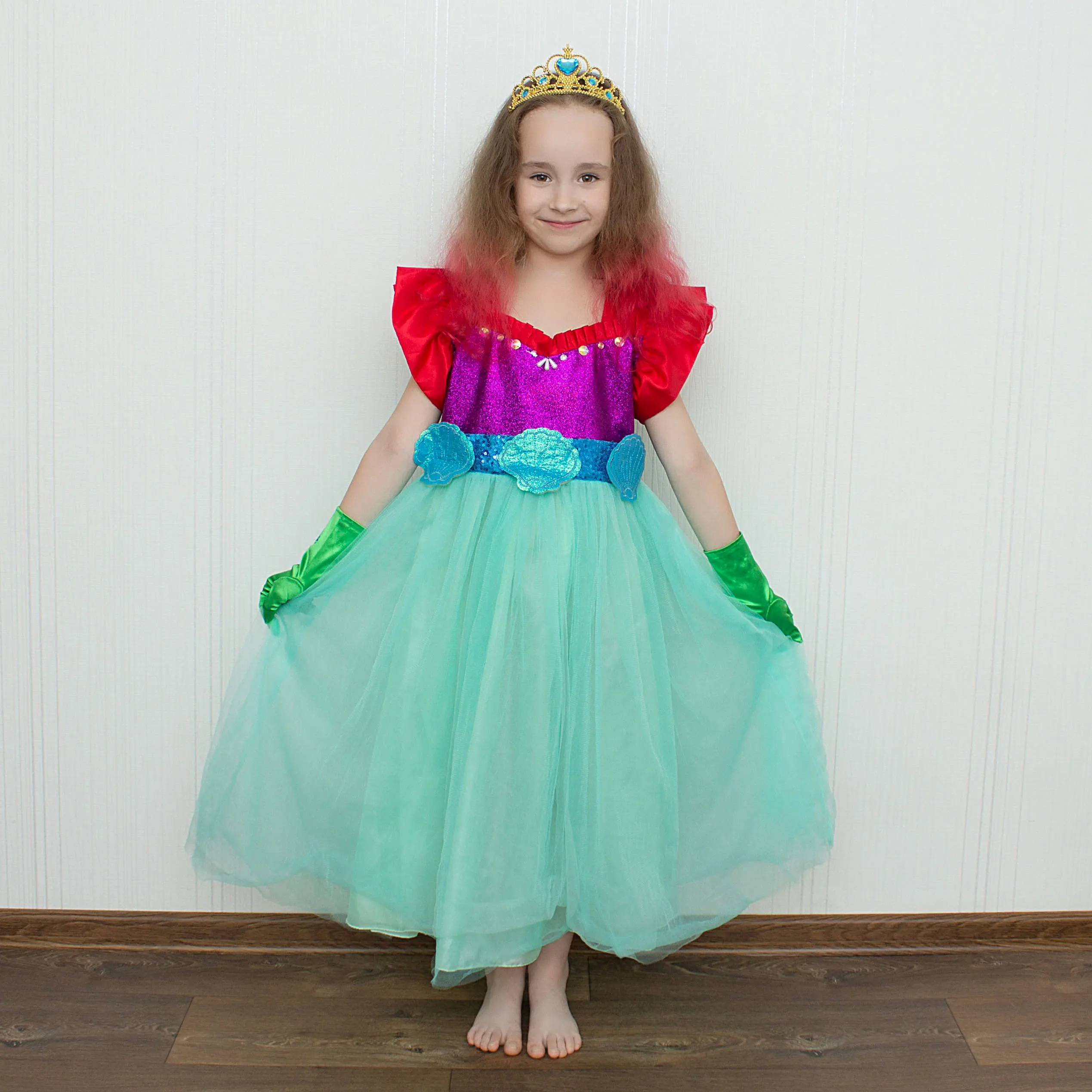 Костюм Русалочки Ариэль для девочек, детский нарядный зеленый костюм для вечеринки на Хэллоуин, день рождения