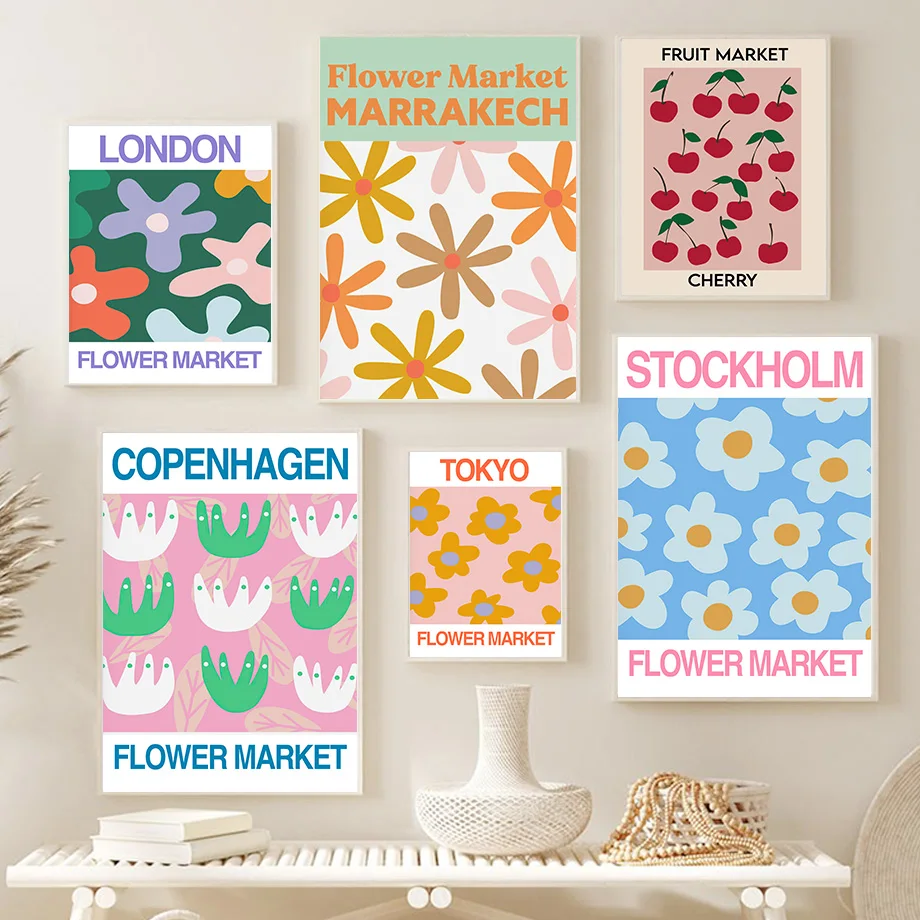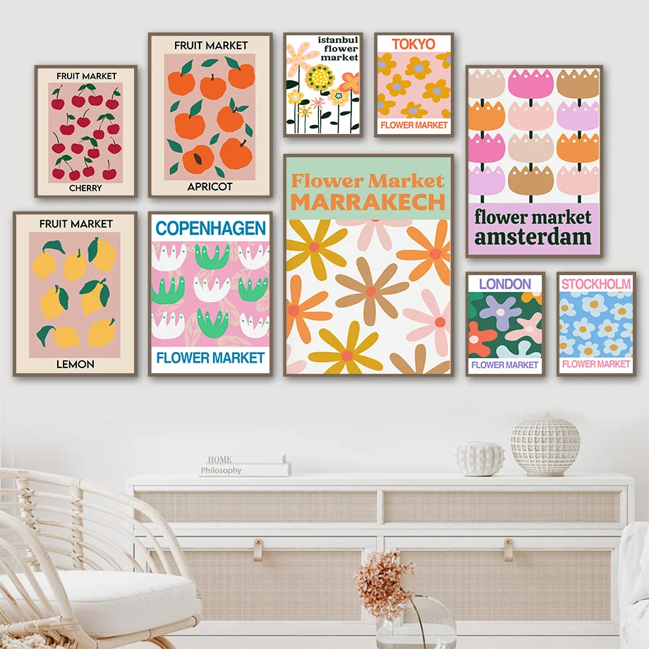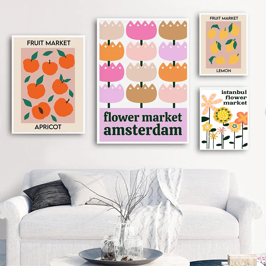 Фруктовый рынок вишня абрикос лимон тюльпан настенная Картина на холсте скандинавские постеры и принты настенные картины для кухни декор комнаты