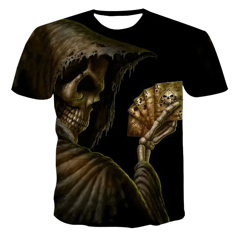Лето 2021, футболка с 3D принтом, Мужская одежда, детская модная уличная одежда для мальчиков с короткими рукавами и черепом смерти, крутая, настраиваемая