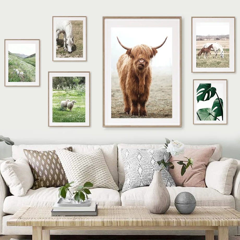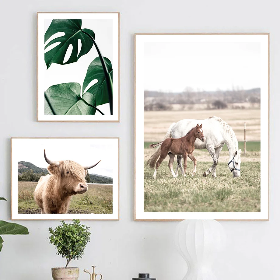 Корова овечка лошадь монстера цветок гора настенная Картина на холсте скандинавские постеры и принты настенные картины для декора гостиной