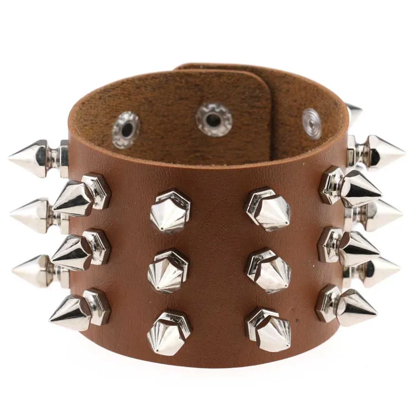 Панк готический рок Cuspidal шипы заклепки конус стад широкий кожаный браслет манжета Браслеты Шарм браслет Мода унисекс ювелирные изделия