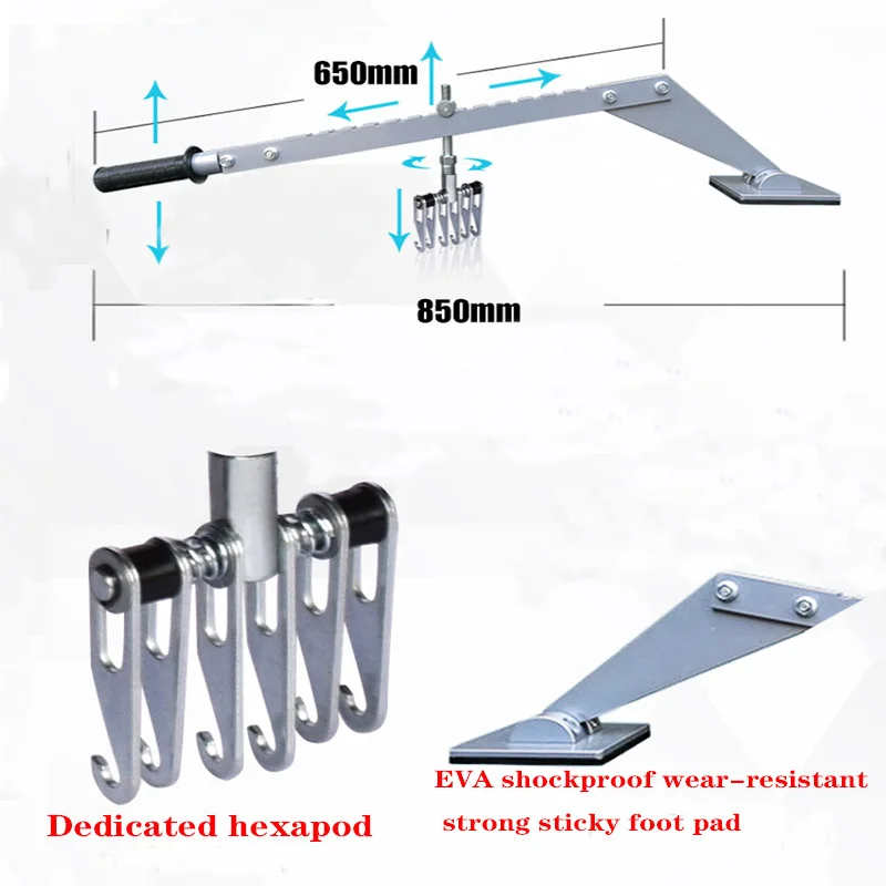 Он изготовлен из авиационного алюминия, оснащен специальными шестиногими когтями и ударопрочными, износостойкими и прочными липкими подушечками для ног из ЭВА.