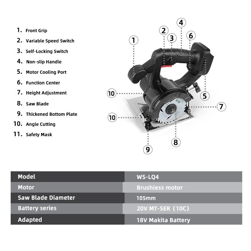 Пила циркулярная VVOSAI, бесщеточная, 105 мм, 20 в